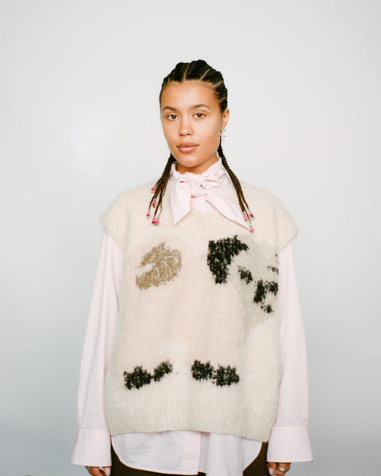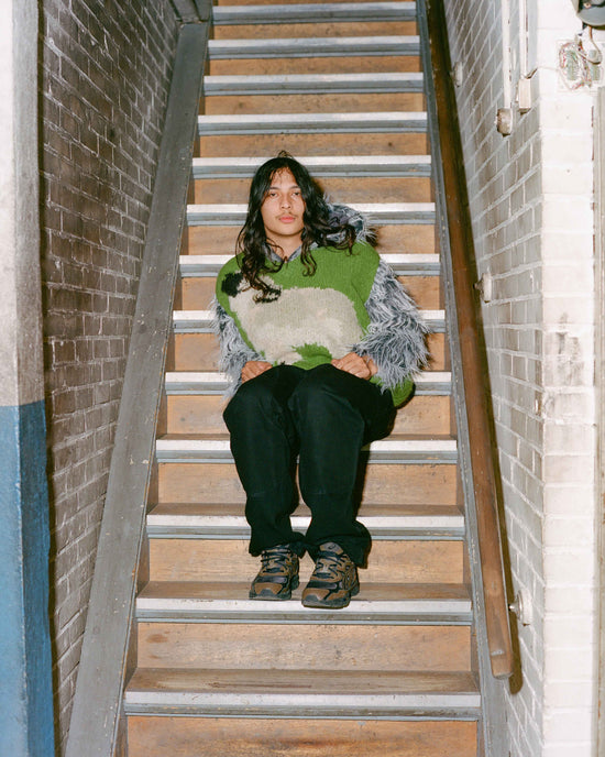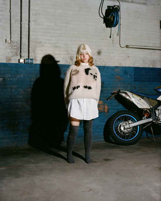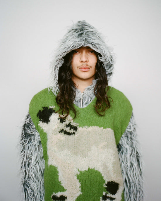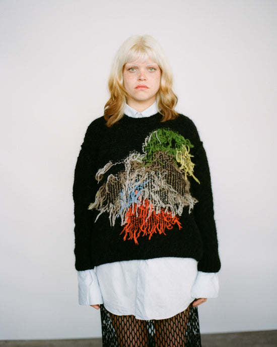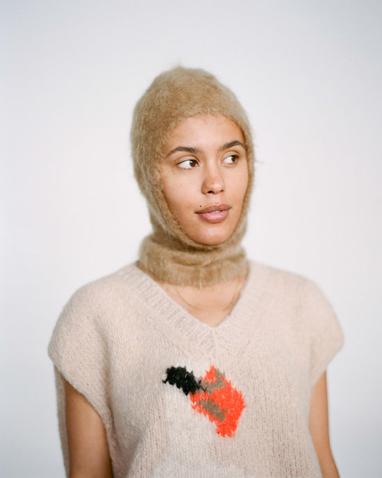 Made in Bosnia, each garment is hand knitted using traditional techniques by a team of 30 craftswomen. The alpaca wool blend creates a soft and warm feel while the brush finish creates the fuzzy look.