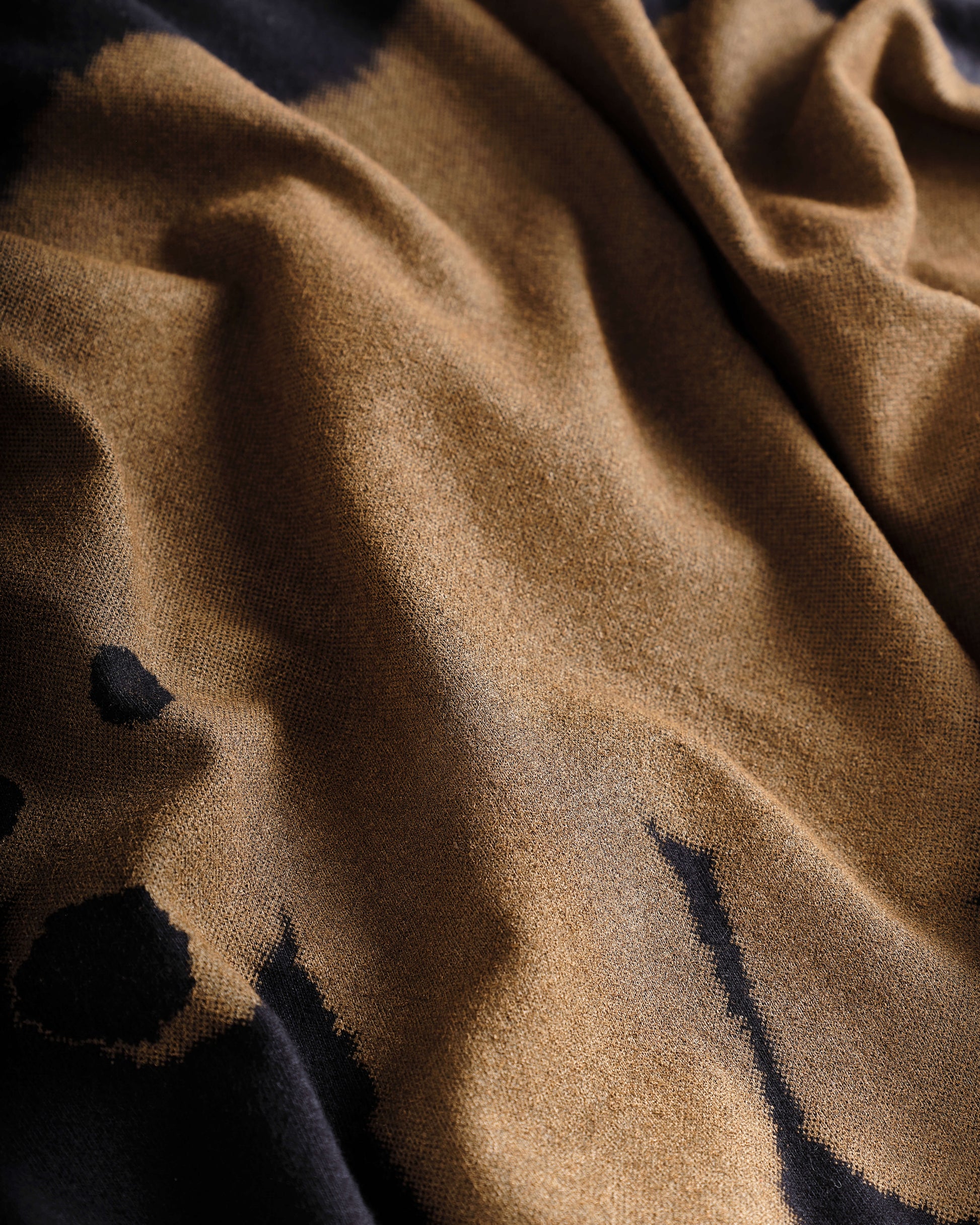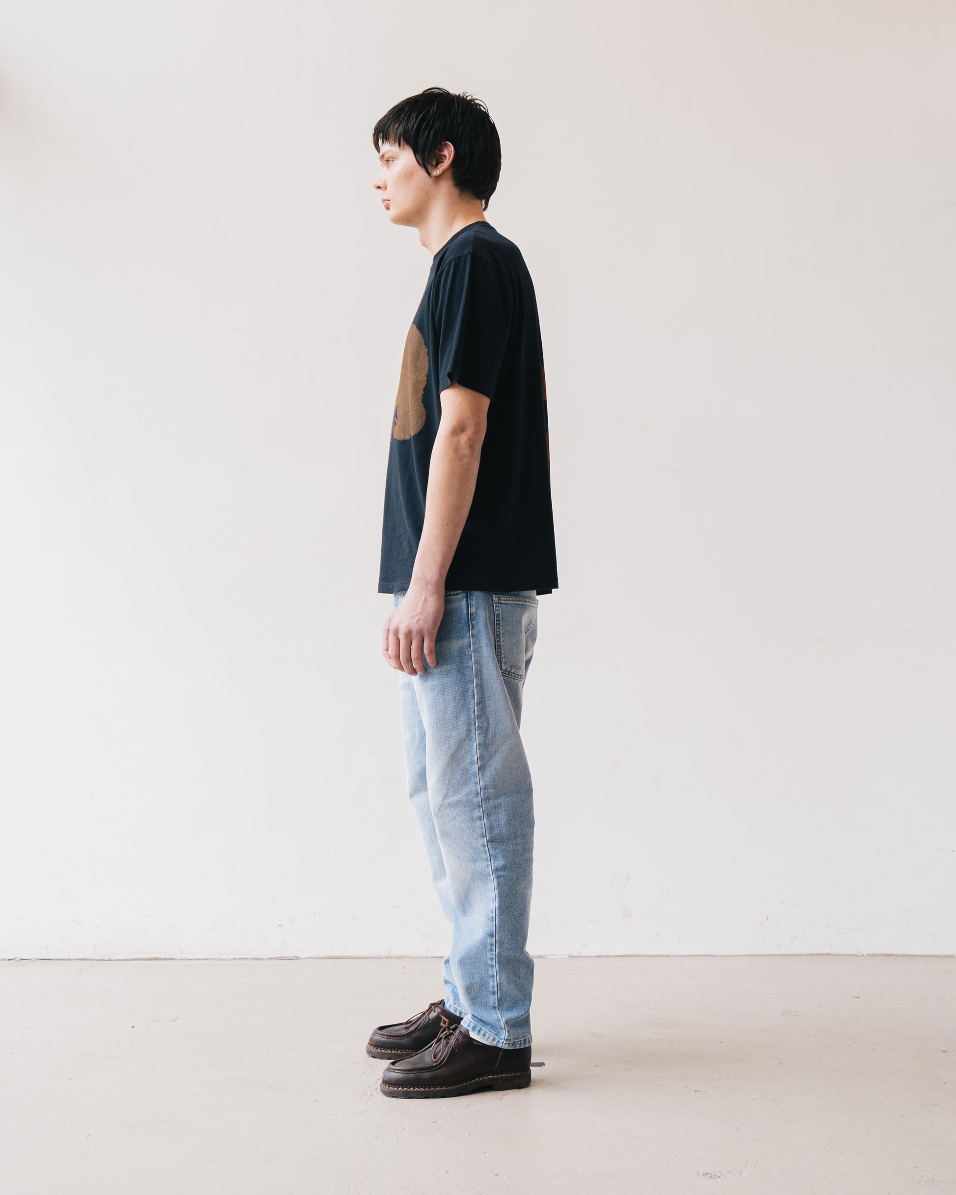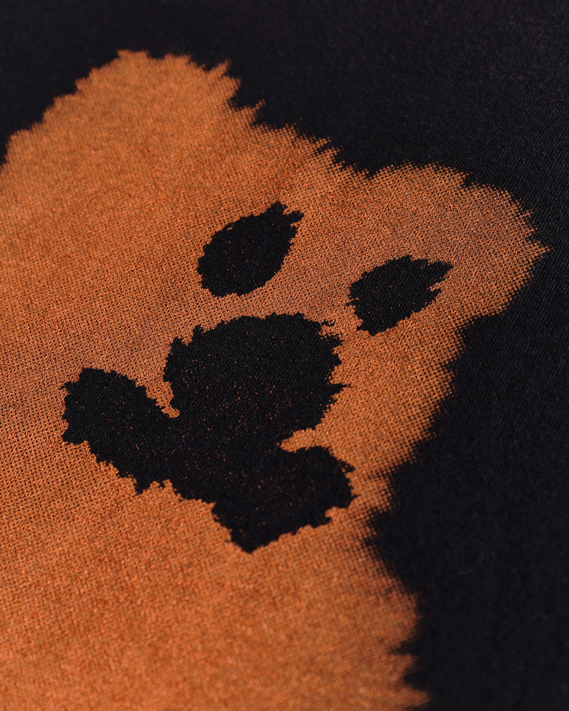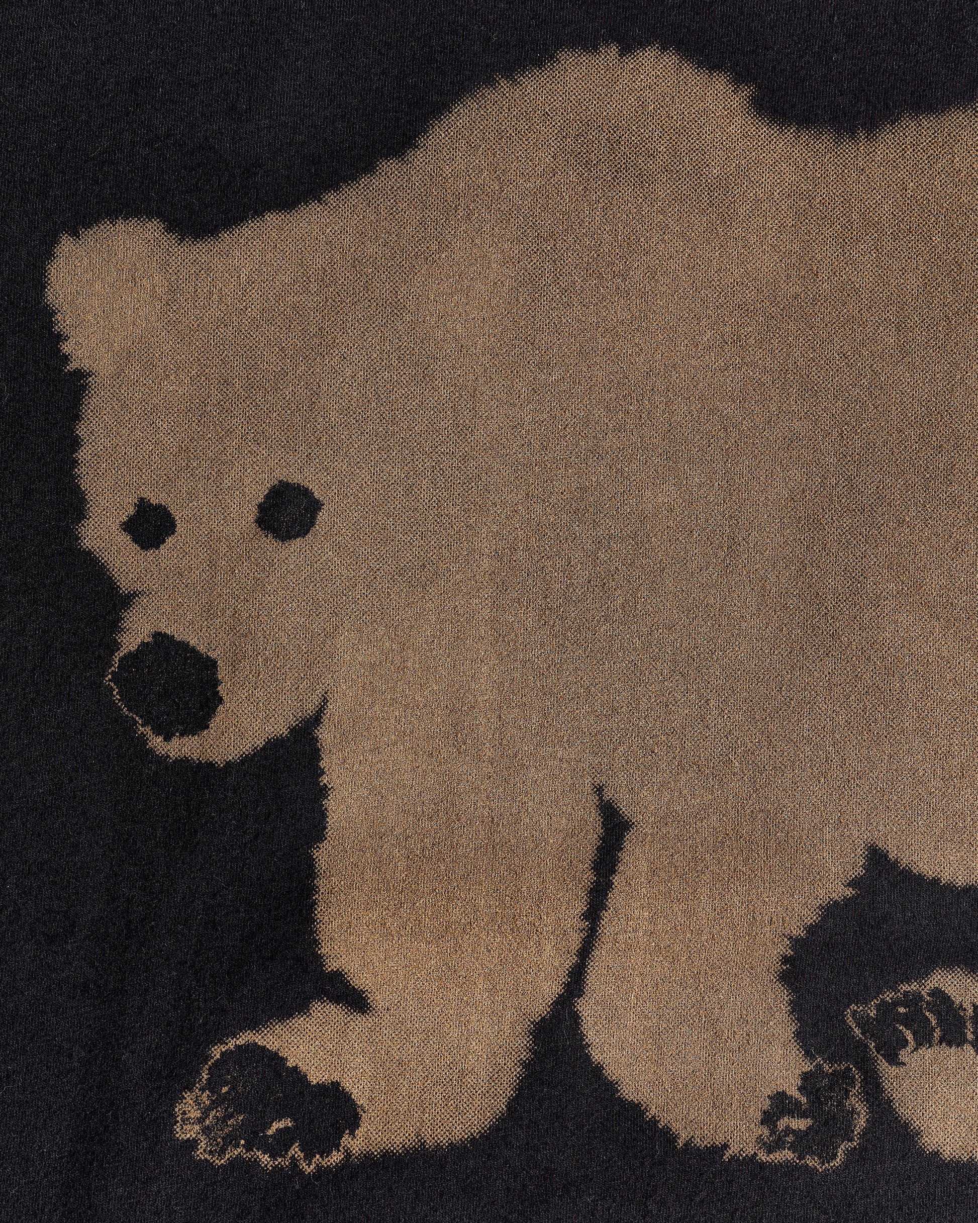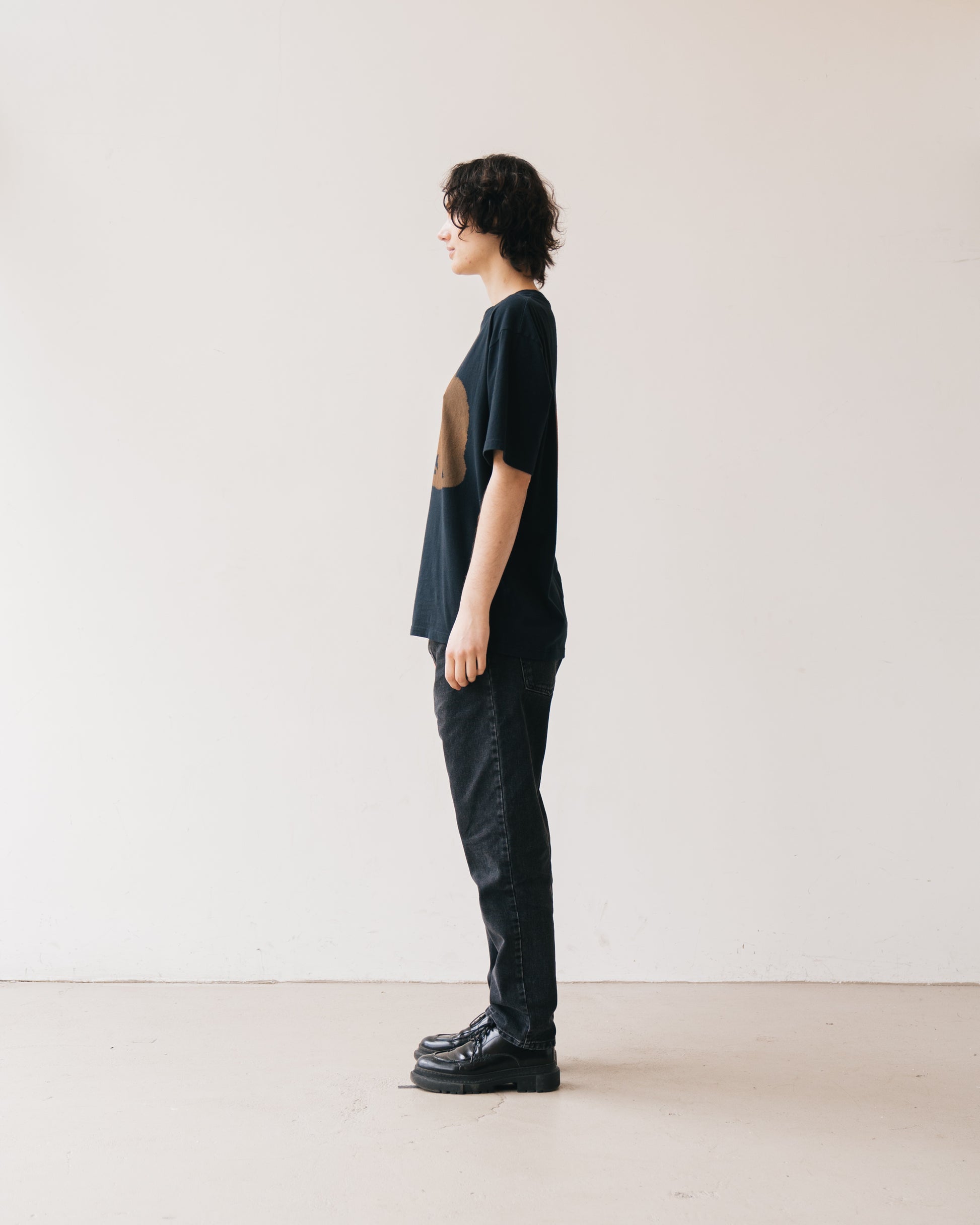 An black unisex t-shirt featuring a silkscreen print of an Bear on the front and back. The fabric used to make this t-shirt is certified by GOTS.