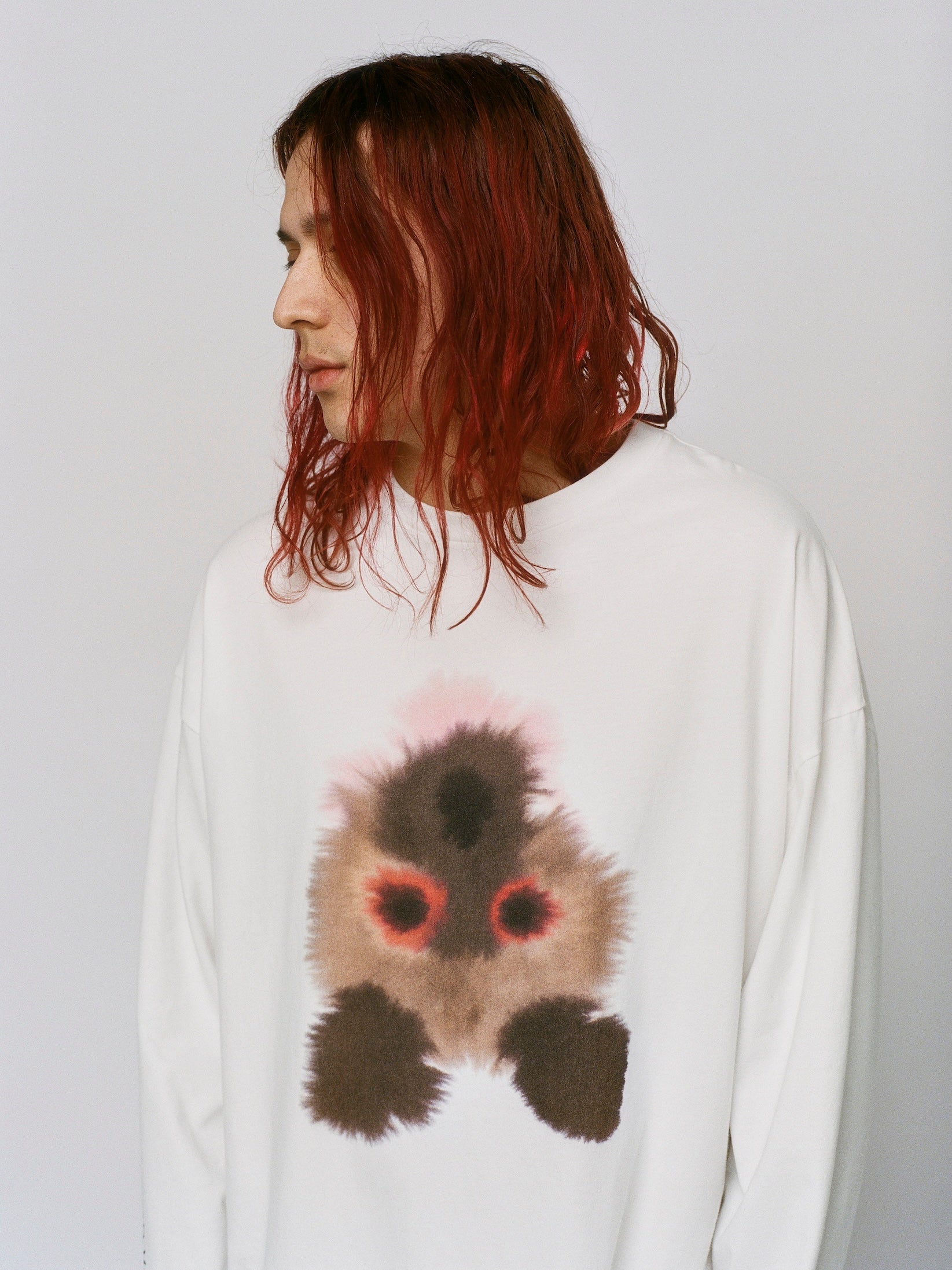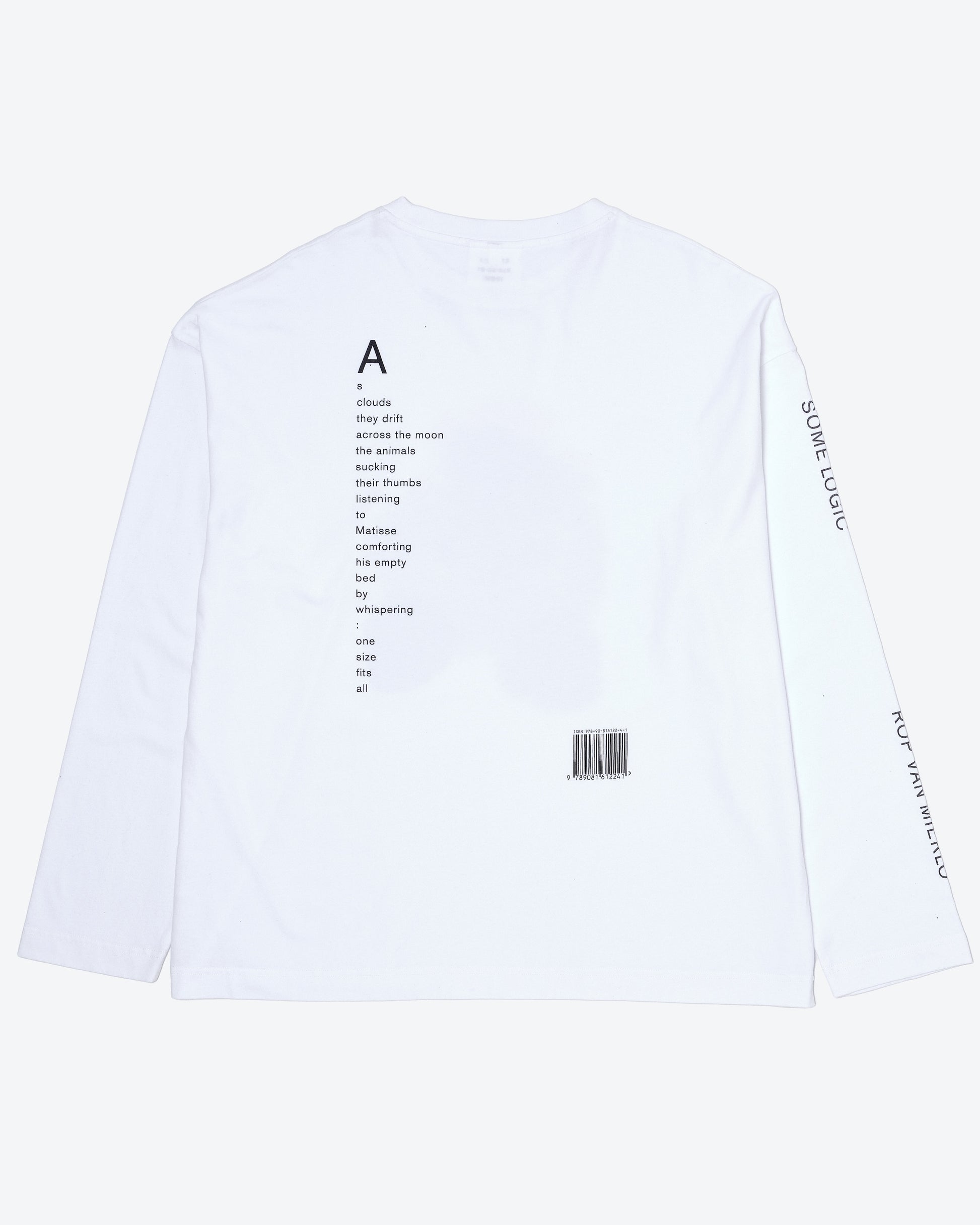 A unisex white long-sleeve featuring an original design by Rop van Mierlo. The fabric used to make this t-shirt is certified by GOTS.