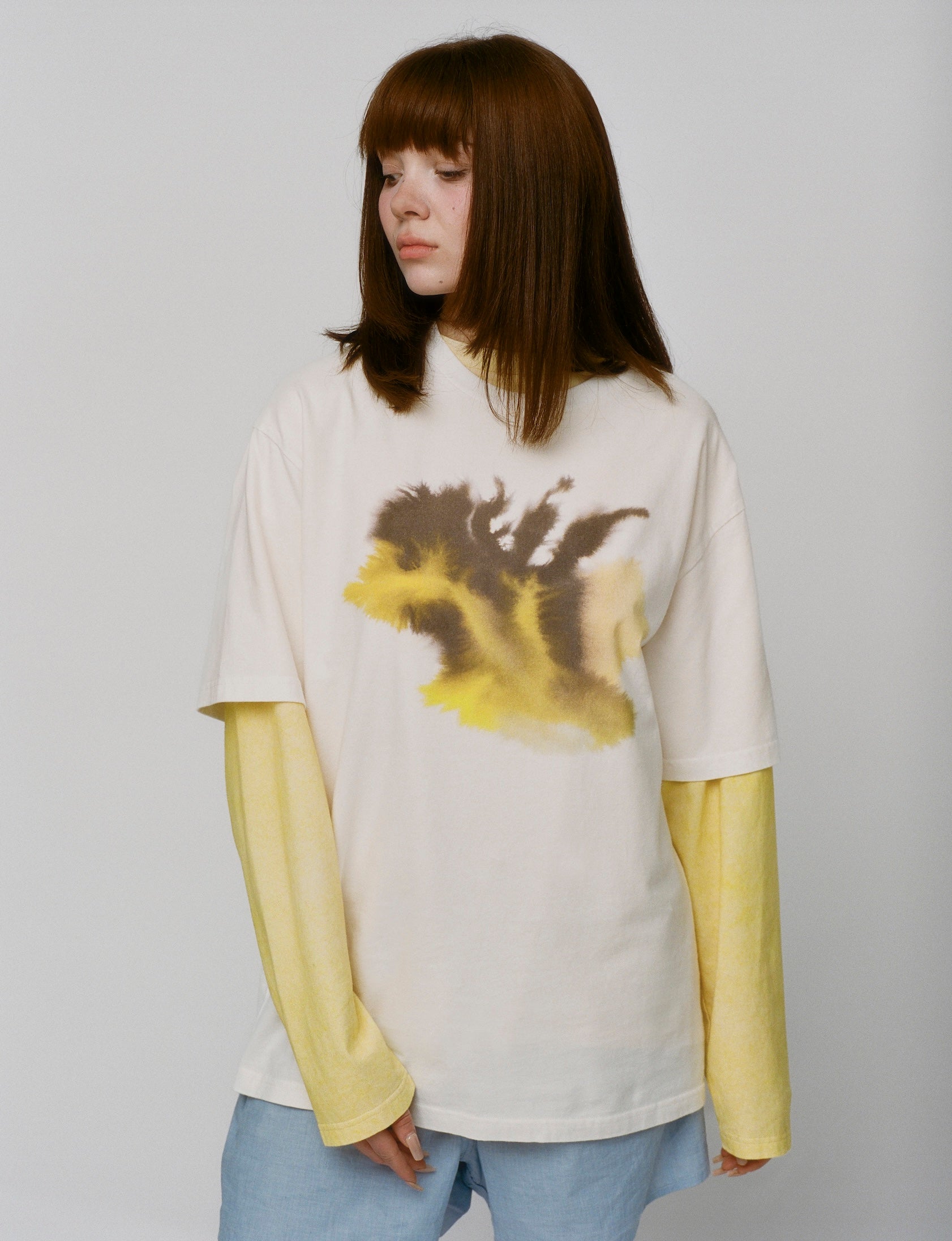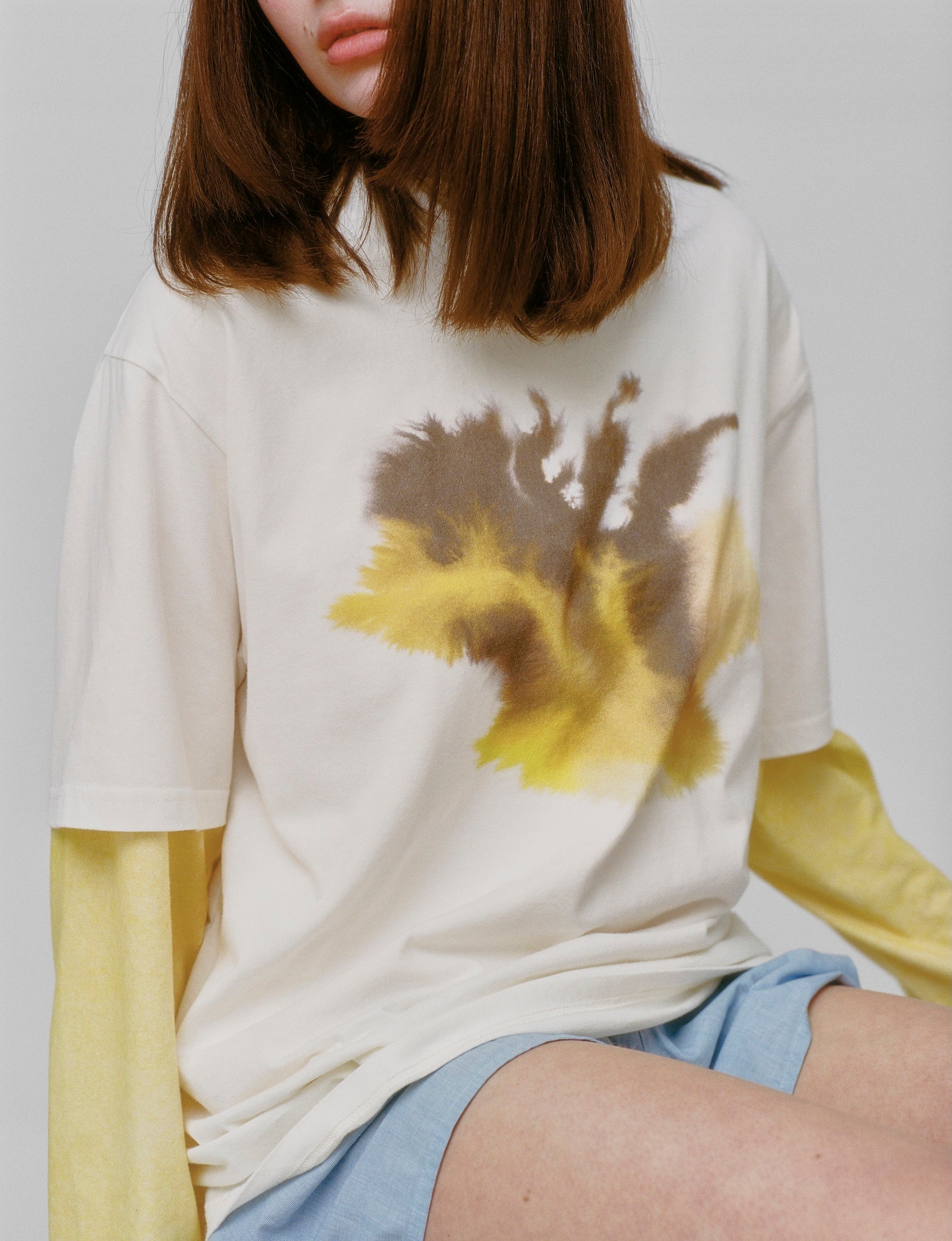 An off white unisex t-shirt featuring a Bumblebee on the front. The fabric used to make this t-shirt is certified by GOTS.
