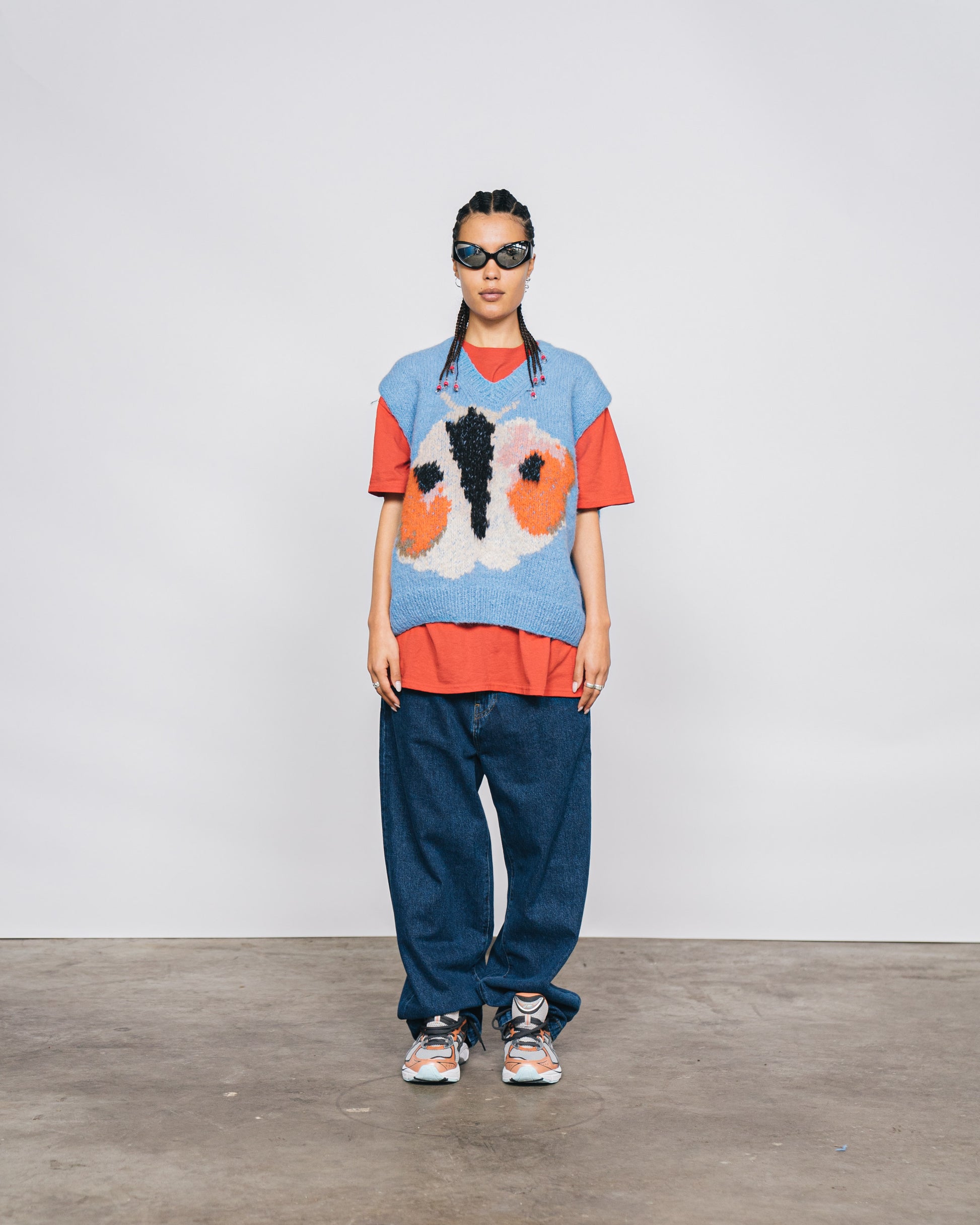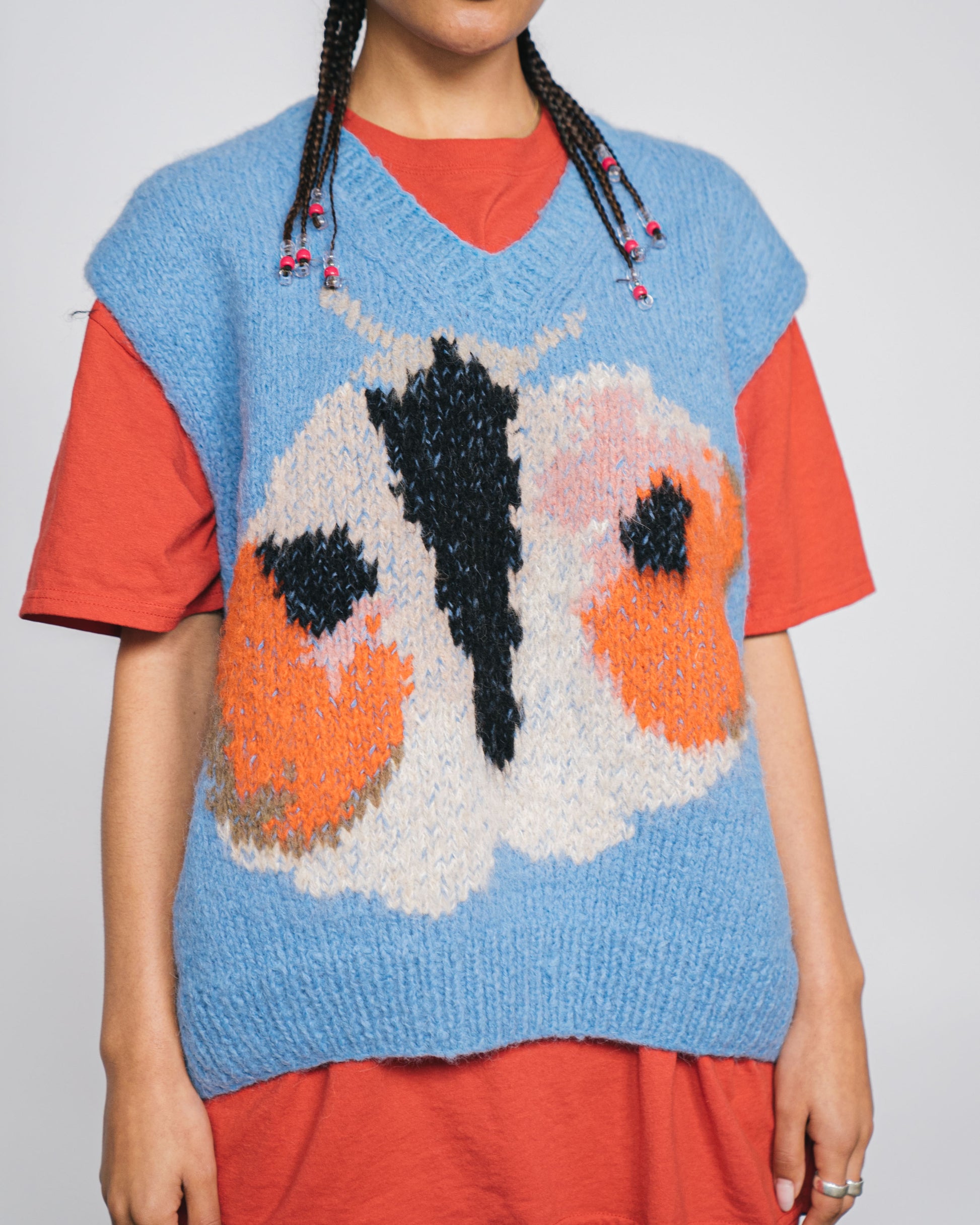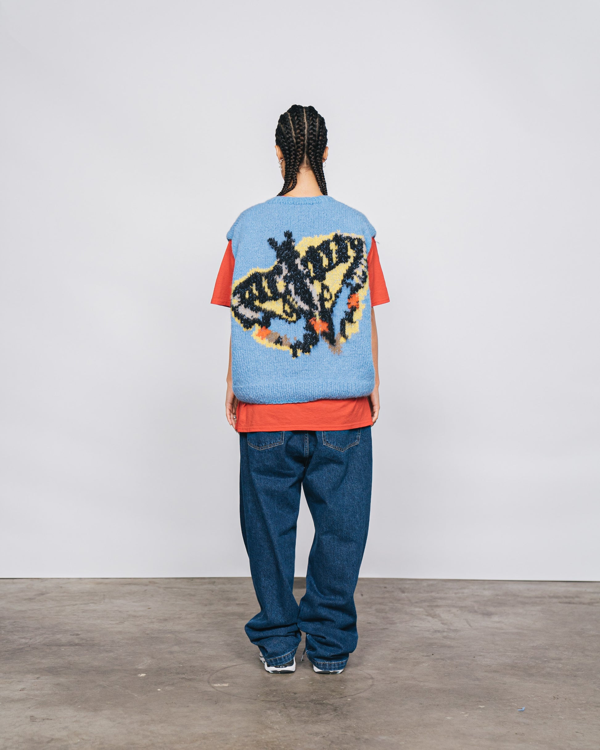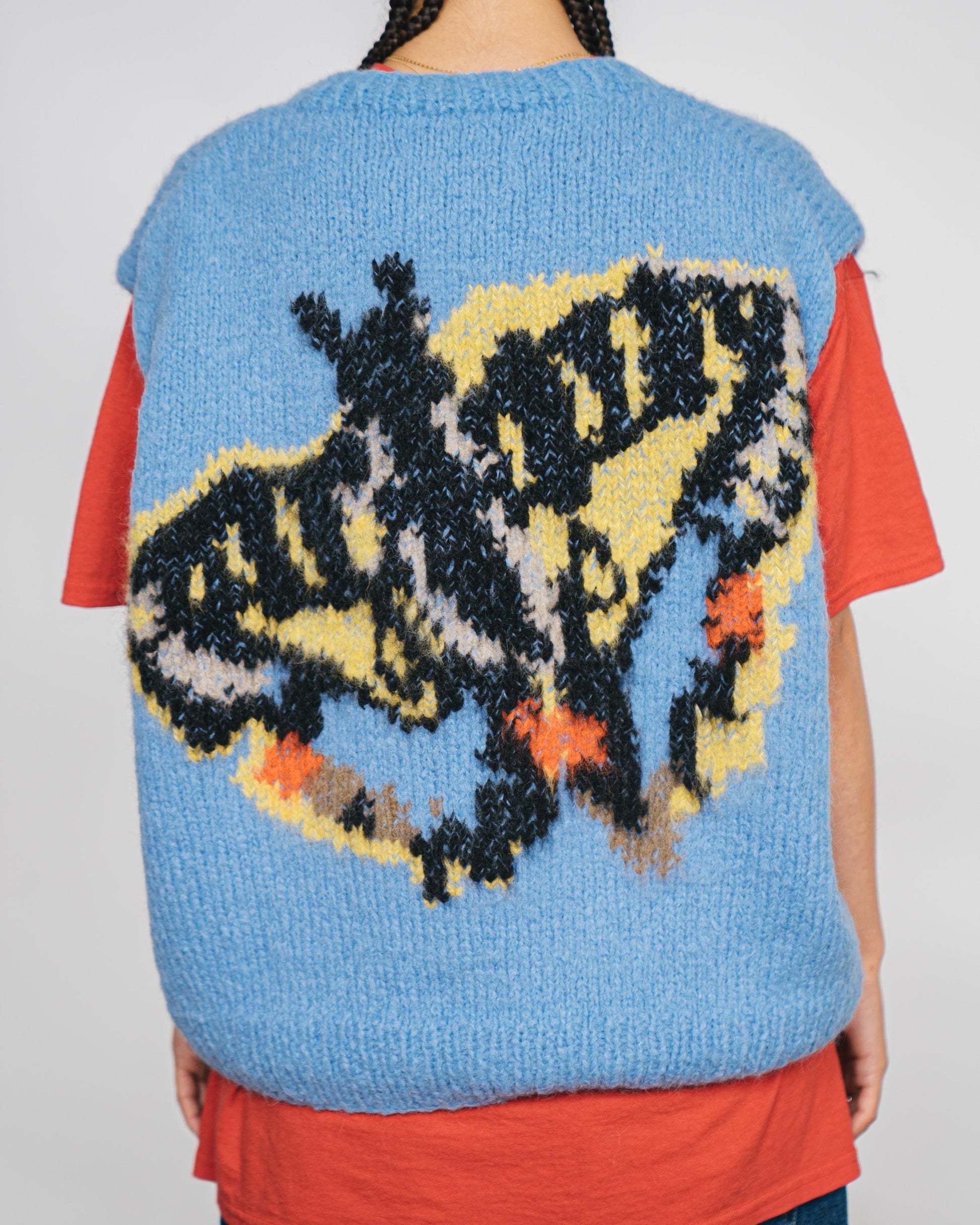 Unisex blue sweater based on the paintings of Rop van Mierlo. Please note, this is a handmade item and may differ slightly to the photo.