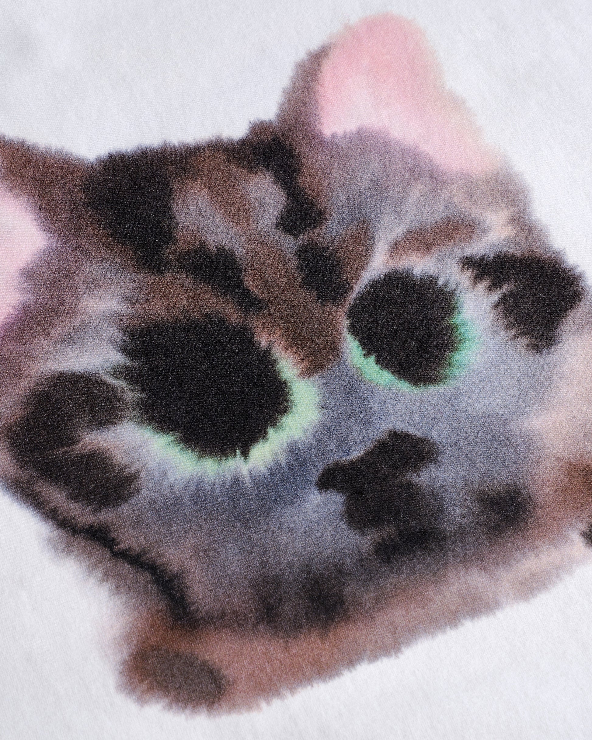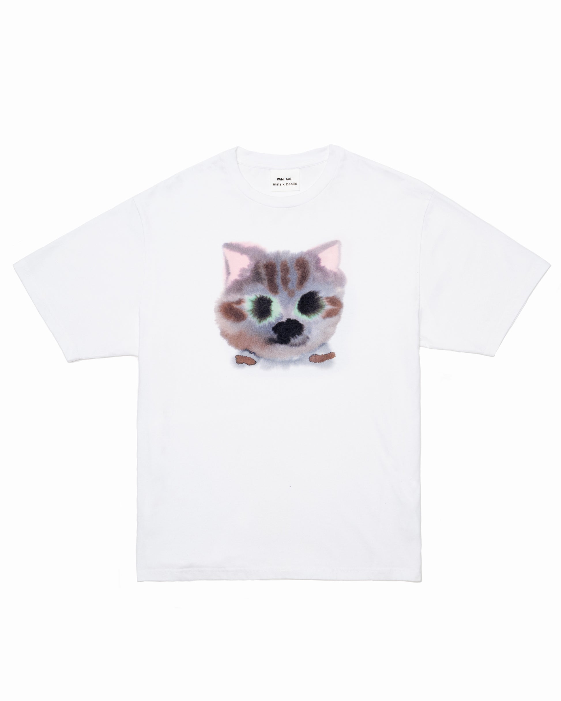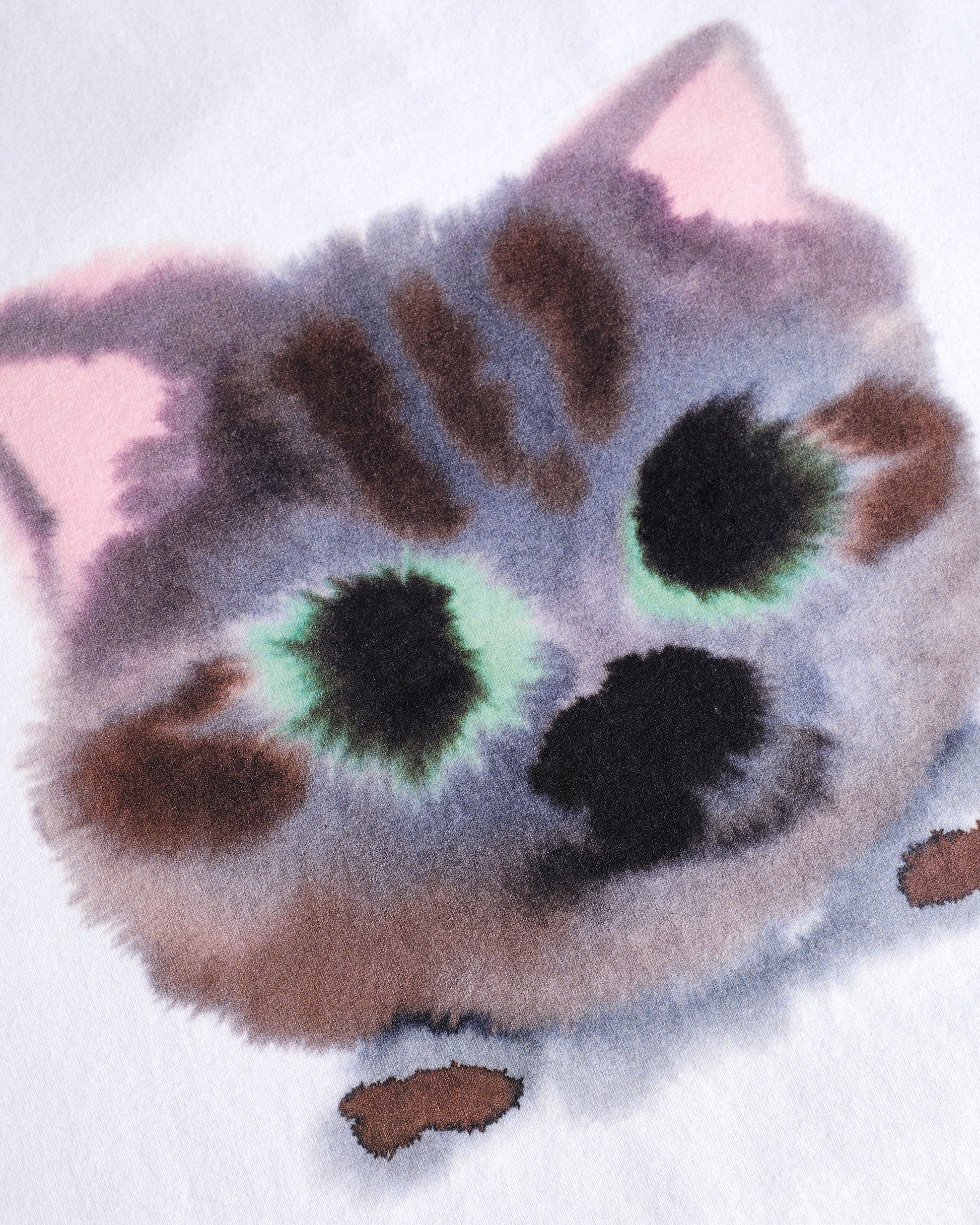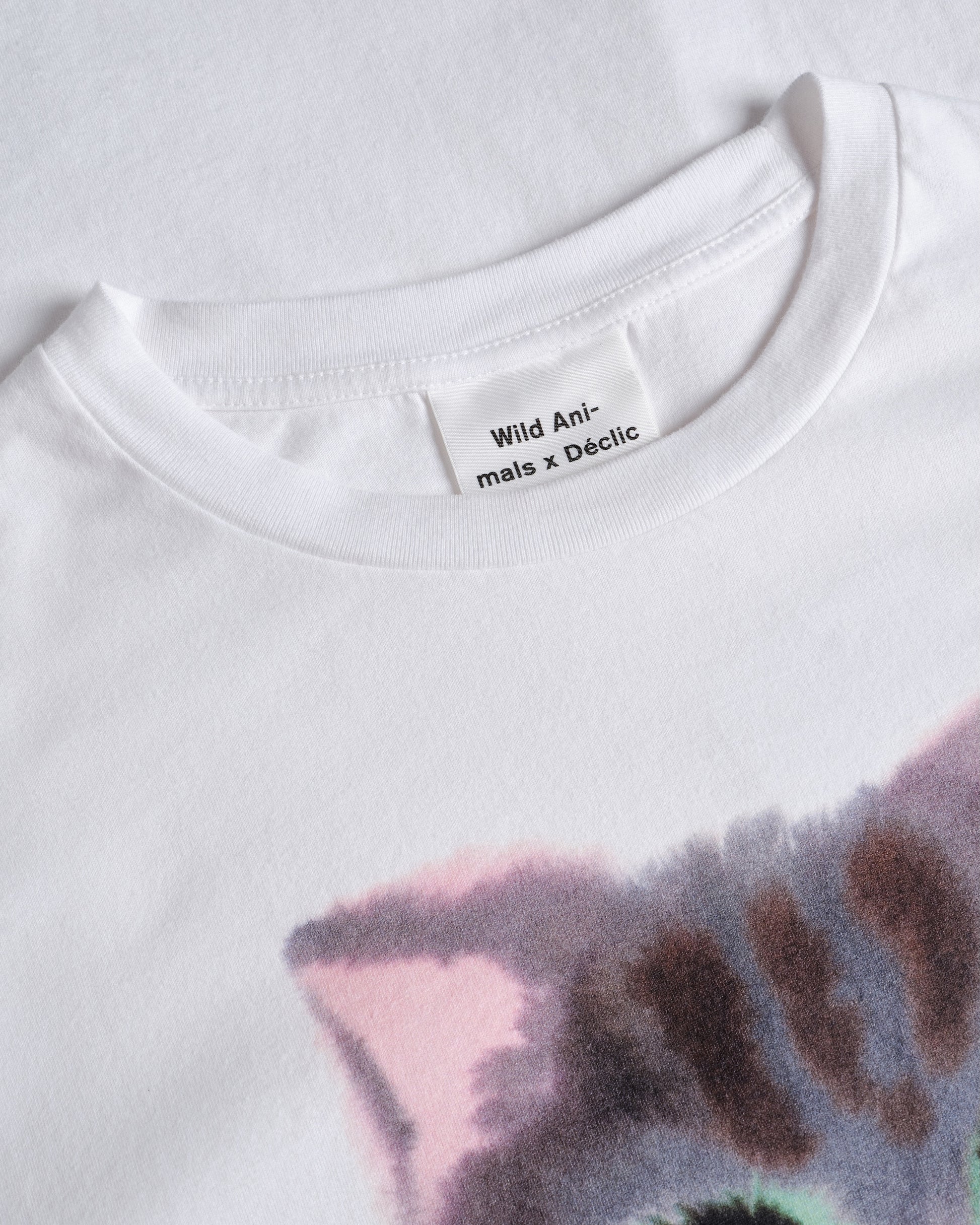 A white unisex t-shirt featuring a Cat Face on the front and on the back created in collaboration with our Tokyo retailer Déclic for their 1-year anniversary. The fabric used to make this t-shirt is certified by GOTS.