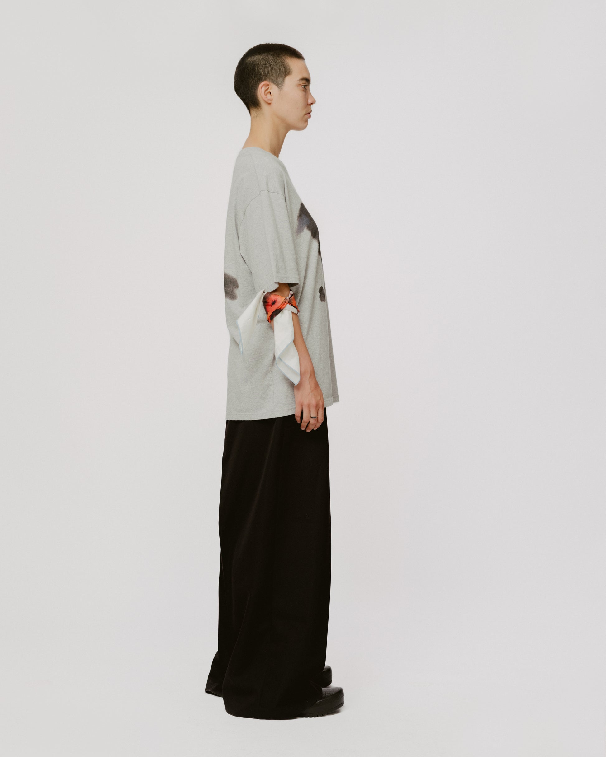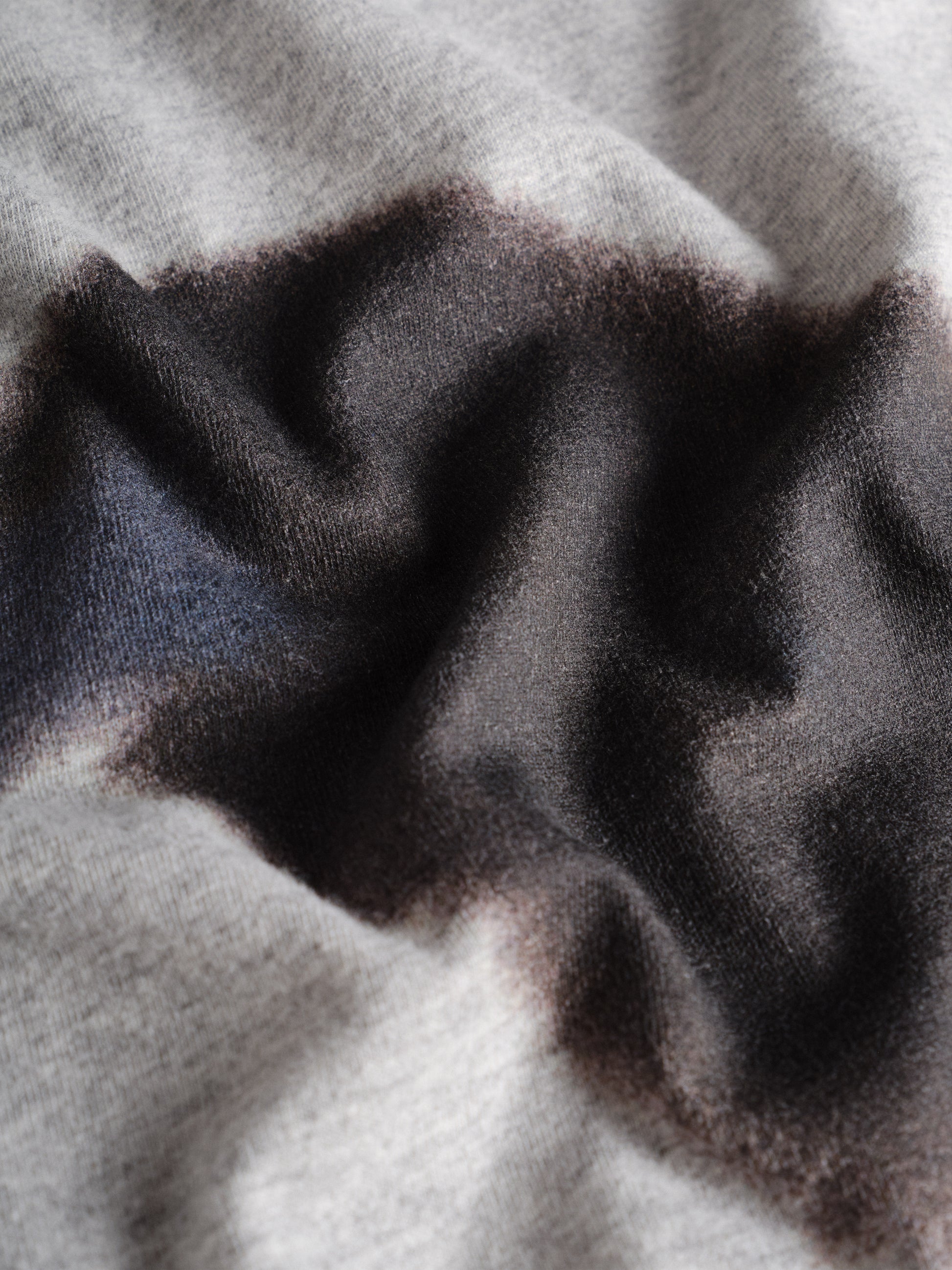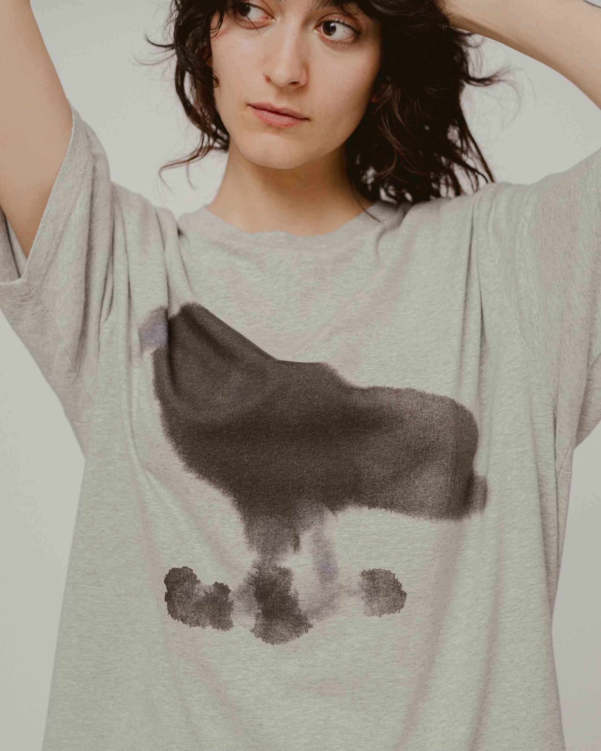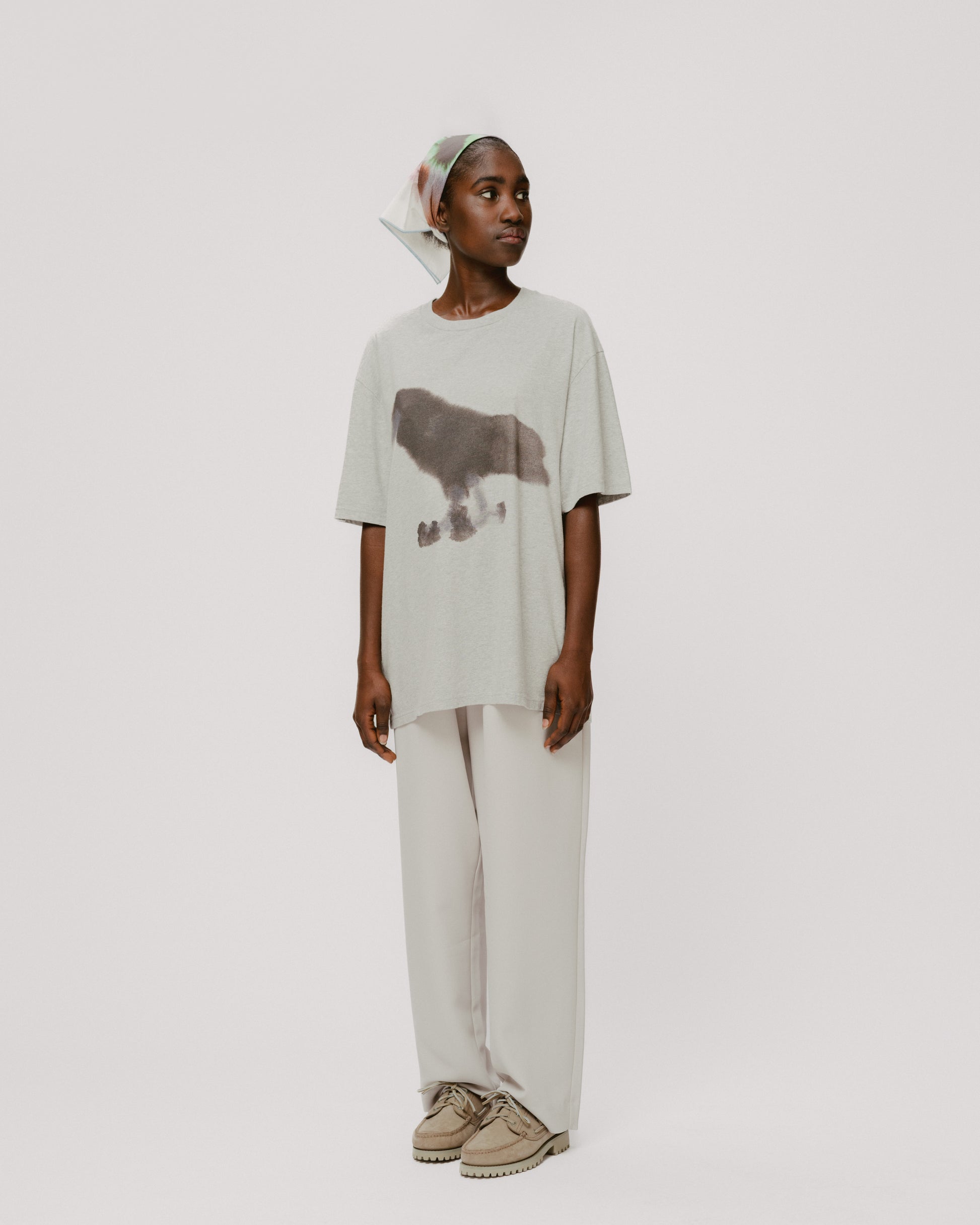 A heather grey unisex t-shirt featuring a Crow on the front and a Crow on the back. The fabric used to make this t-shirt is certified by GOTS.