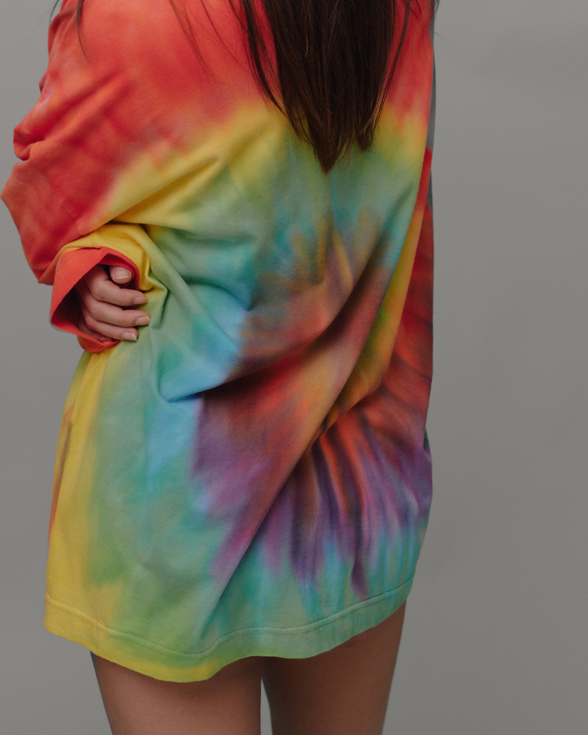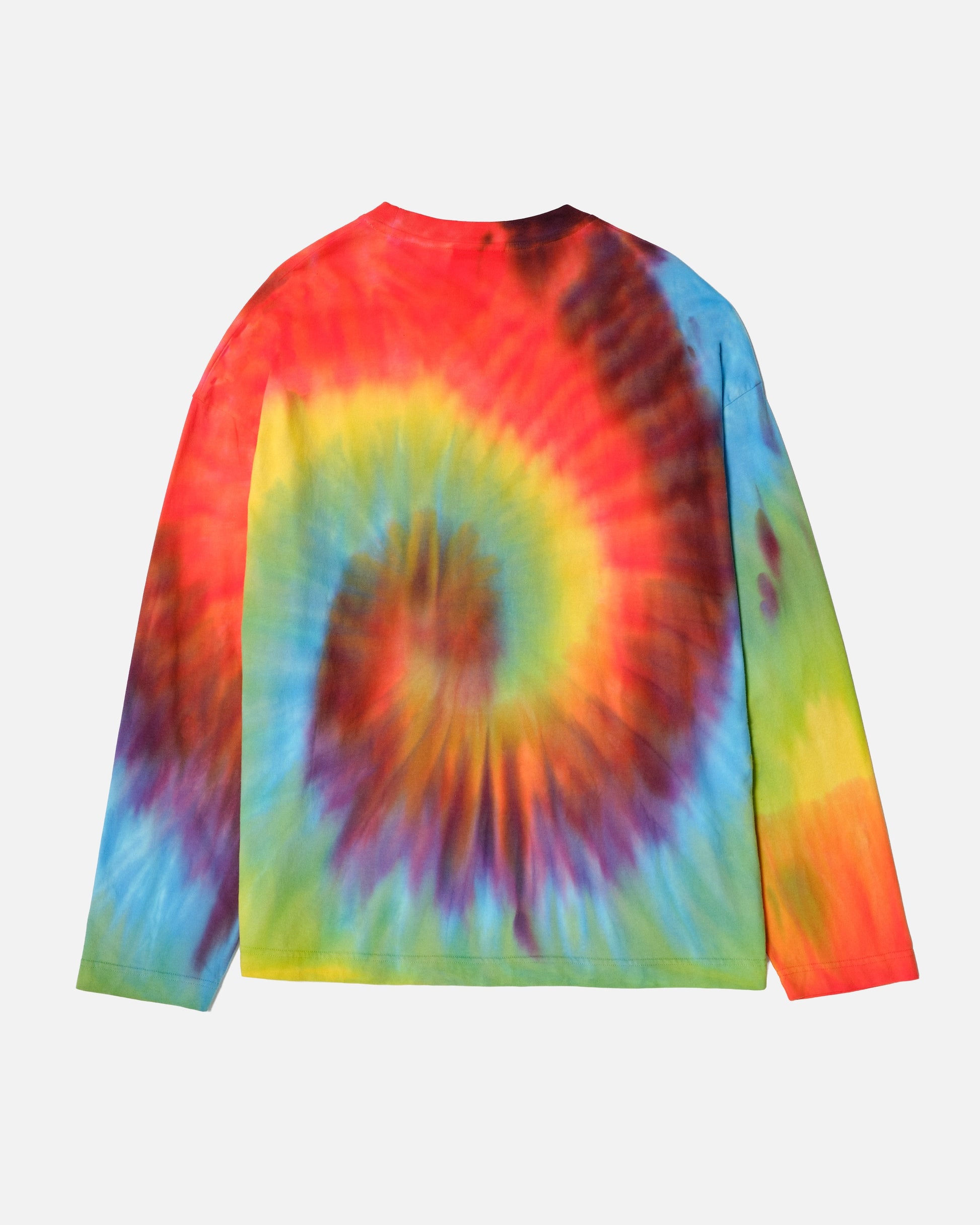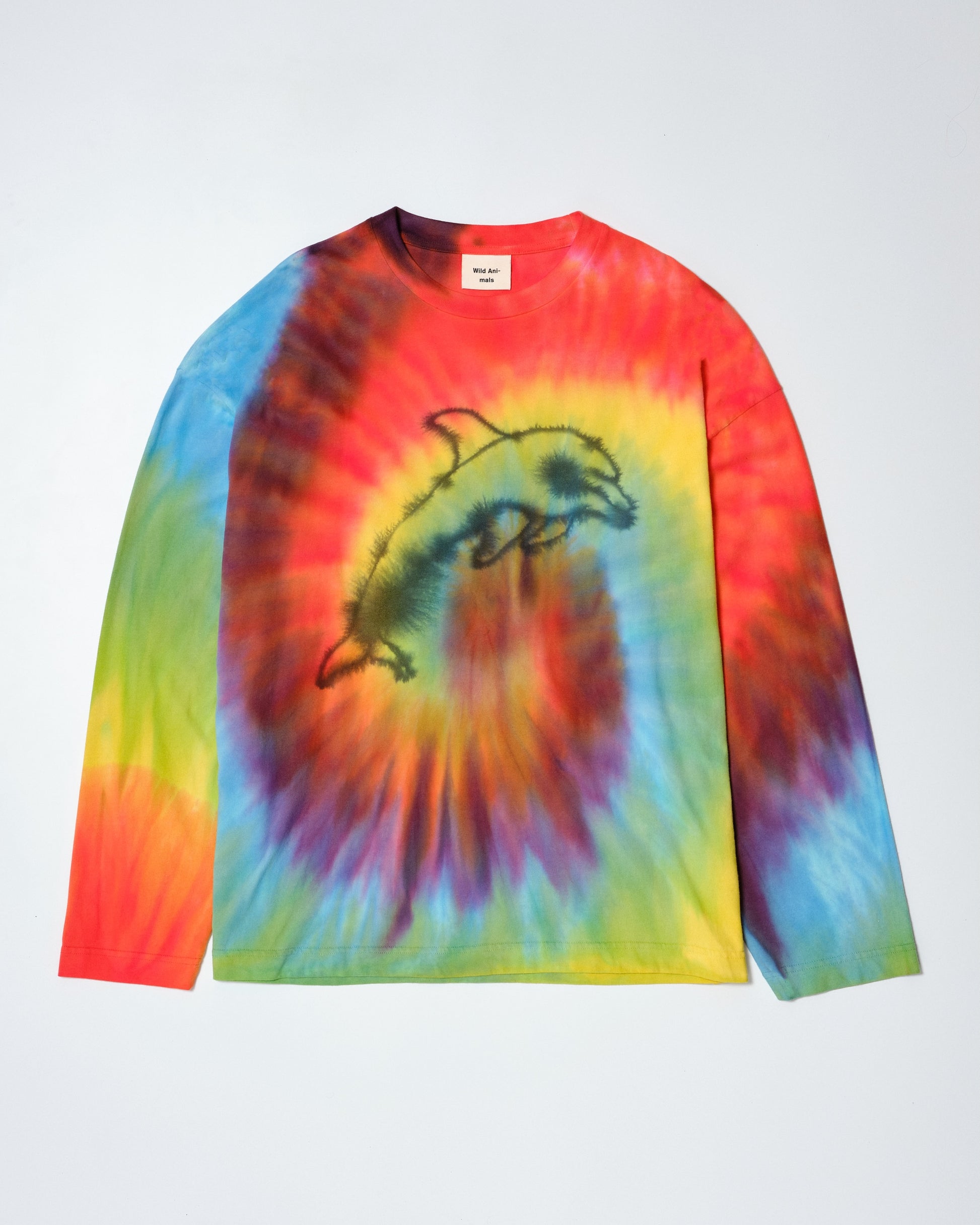A tie dye unisex longsleeve featuring a Dolphin on the front. The fabric used to make this t-shirt is certified by GOTS.