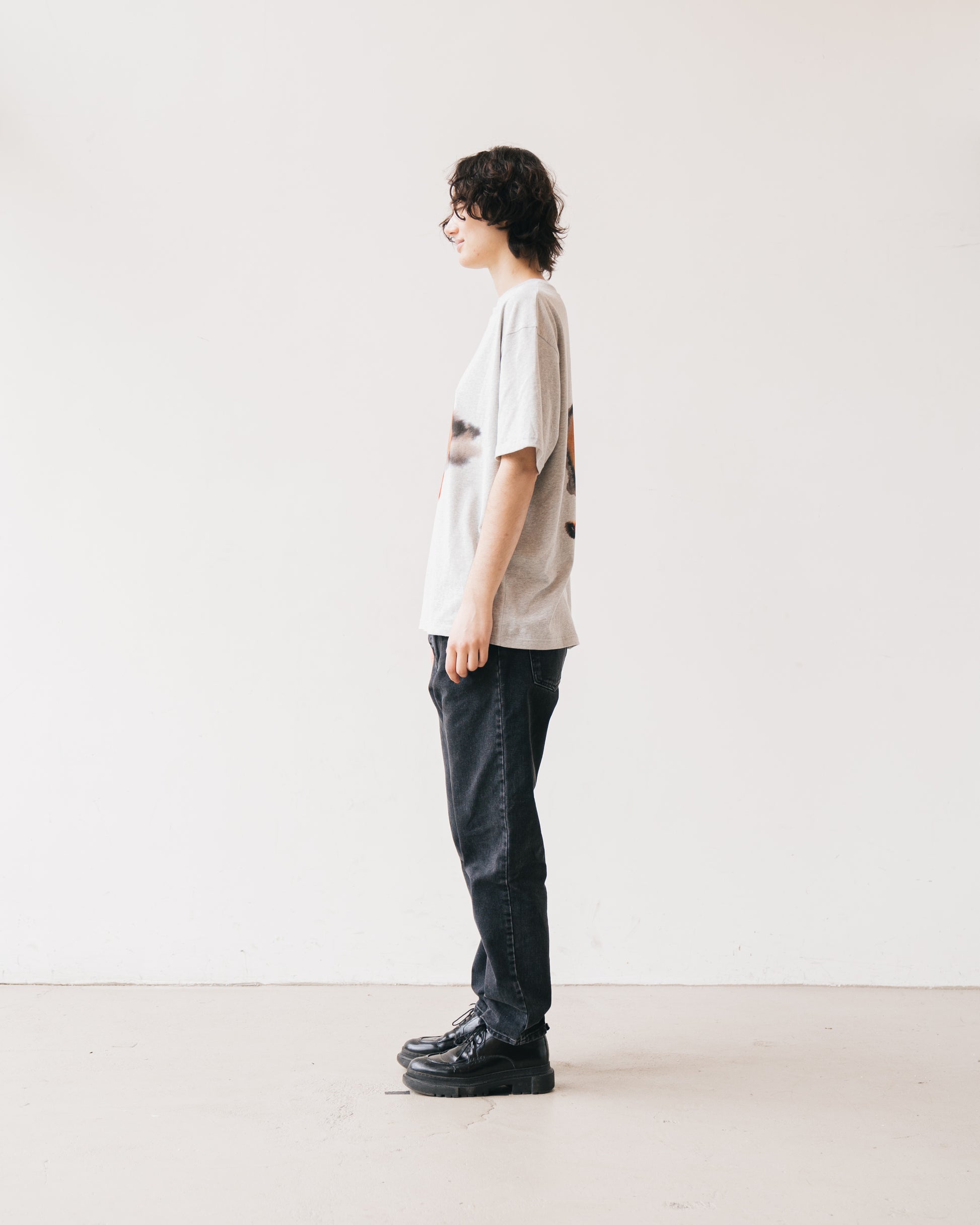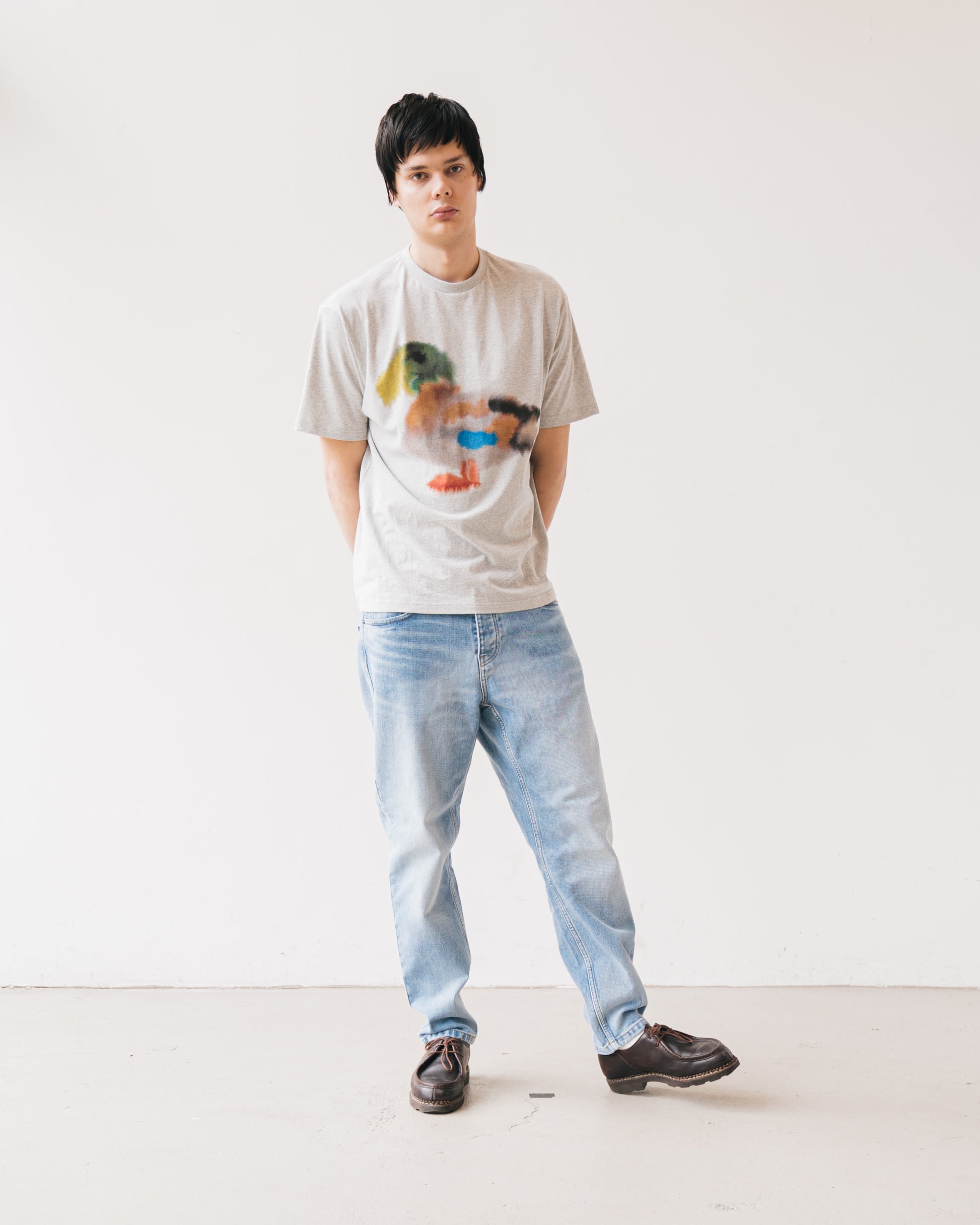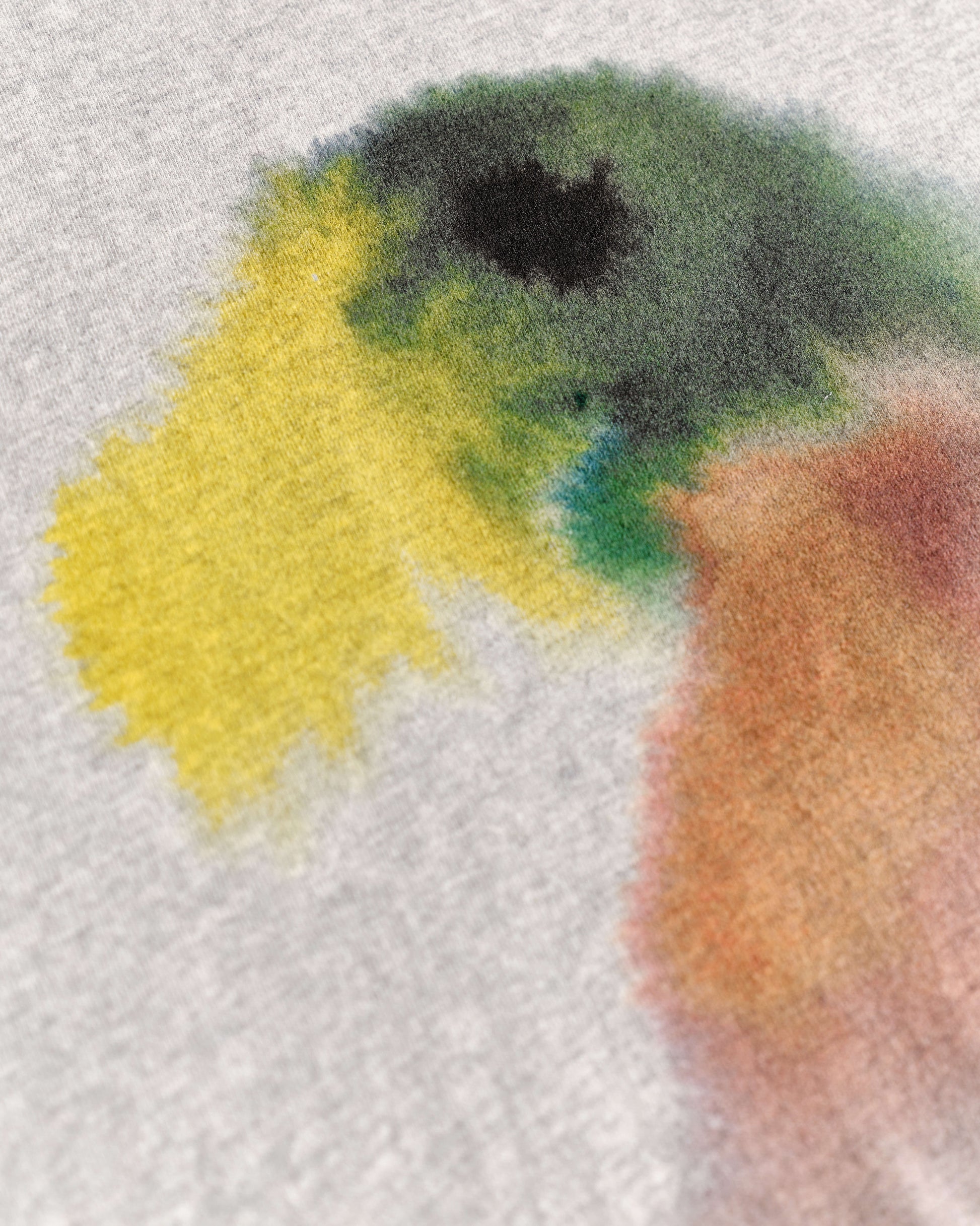An grey unisex t-shirt featuring a digital print of an Duck on the front and back. The fabric used to make this t-shirt is certified by GOTS.
