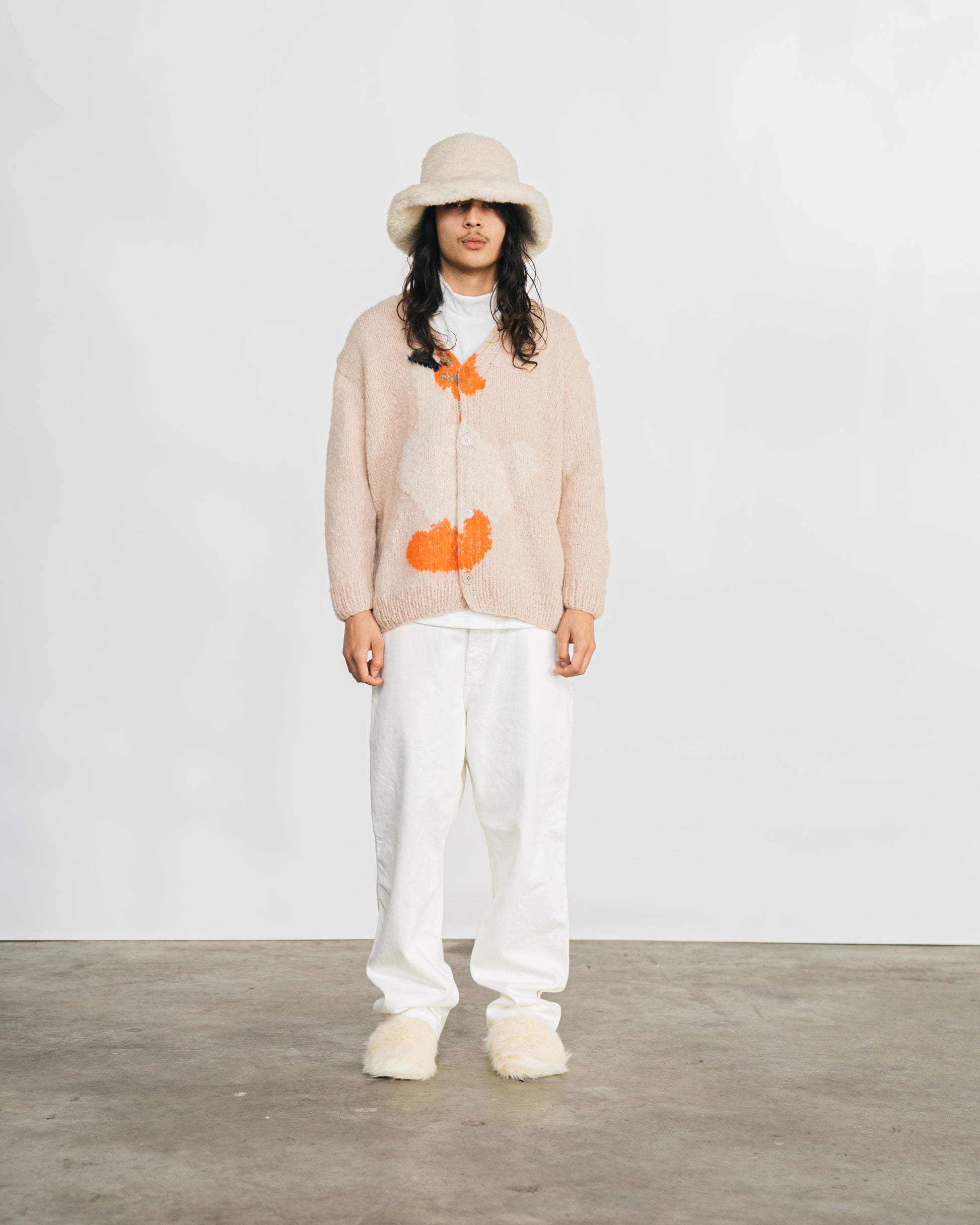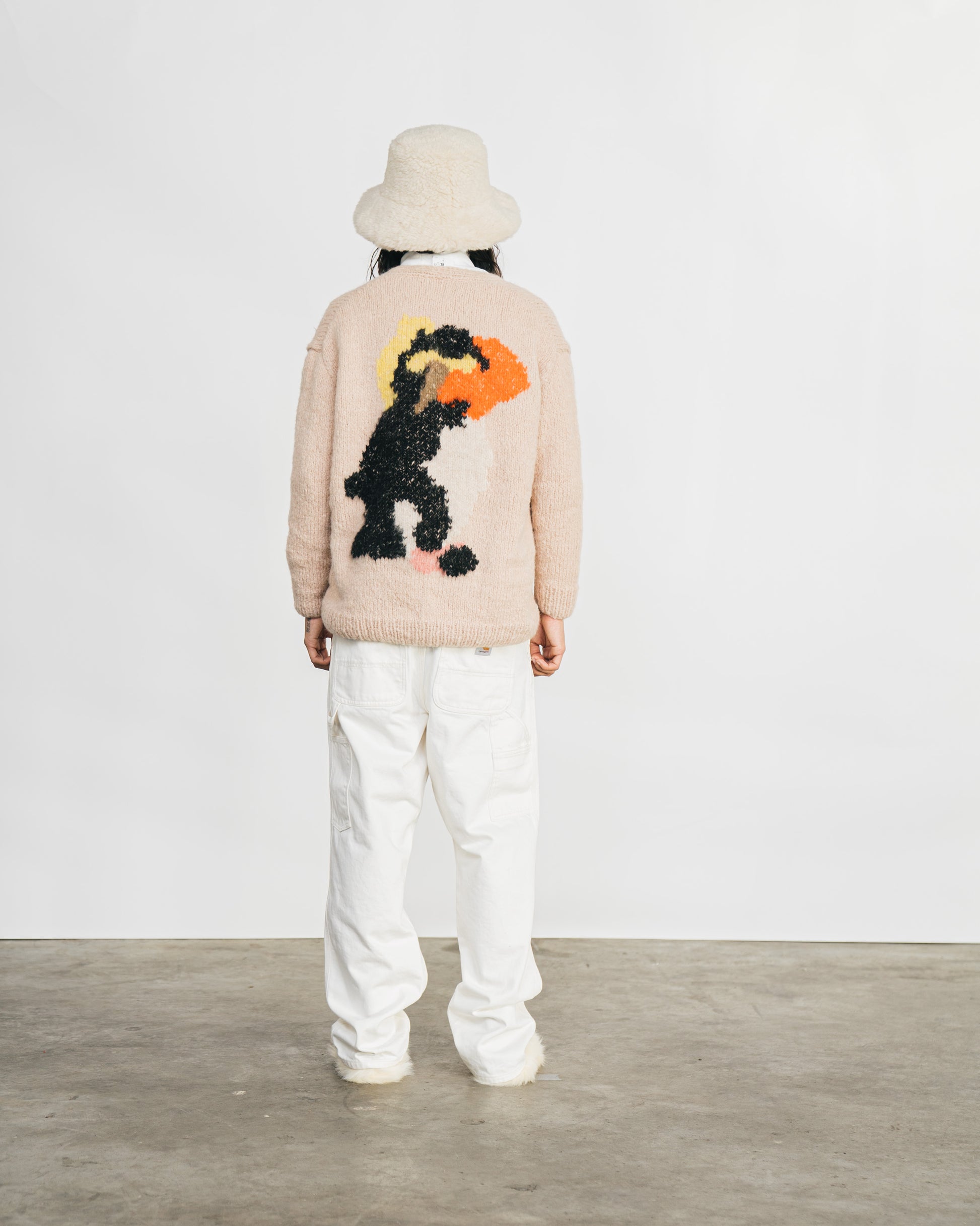 Unisex beige cardigan based on the paintings of Rop van Mierlo. Please note, this is a handmade item and may differ slightly to the photo.
