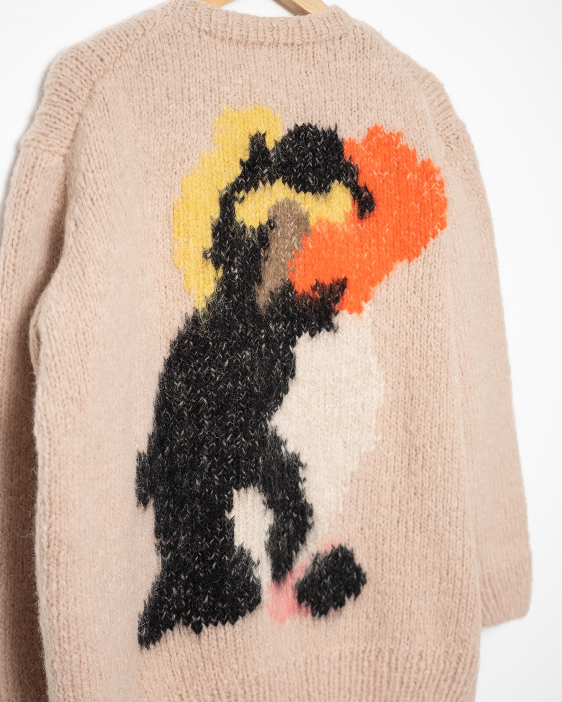 Unisex beige sweater based on the paintings of Rop van Mierlo. Please note, this is a handmade item and may differ slightly to the photo.