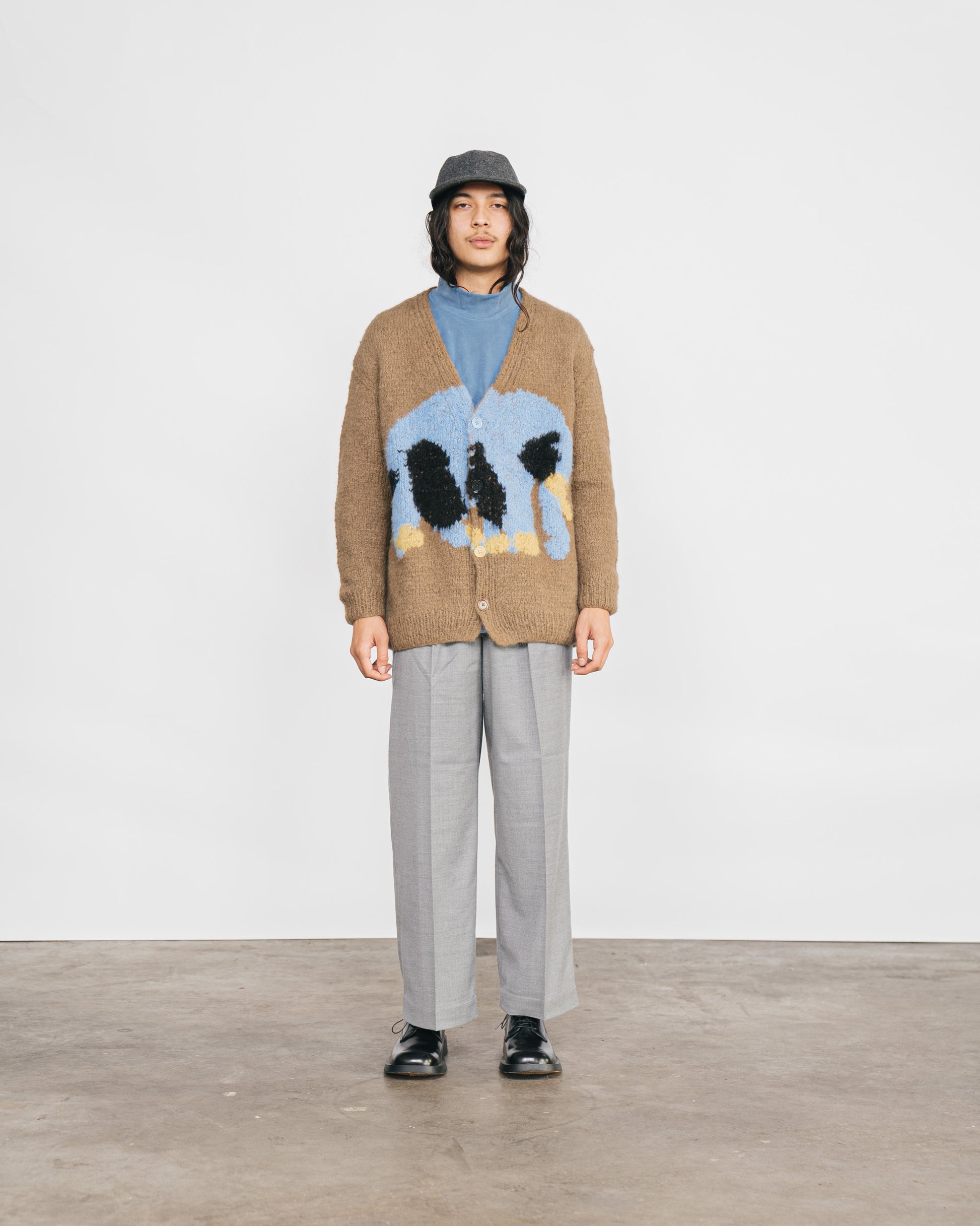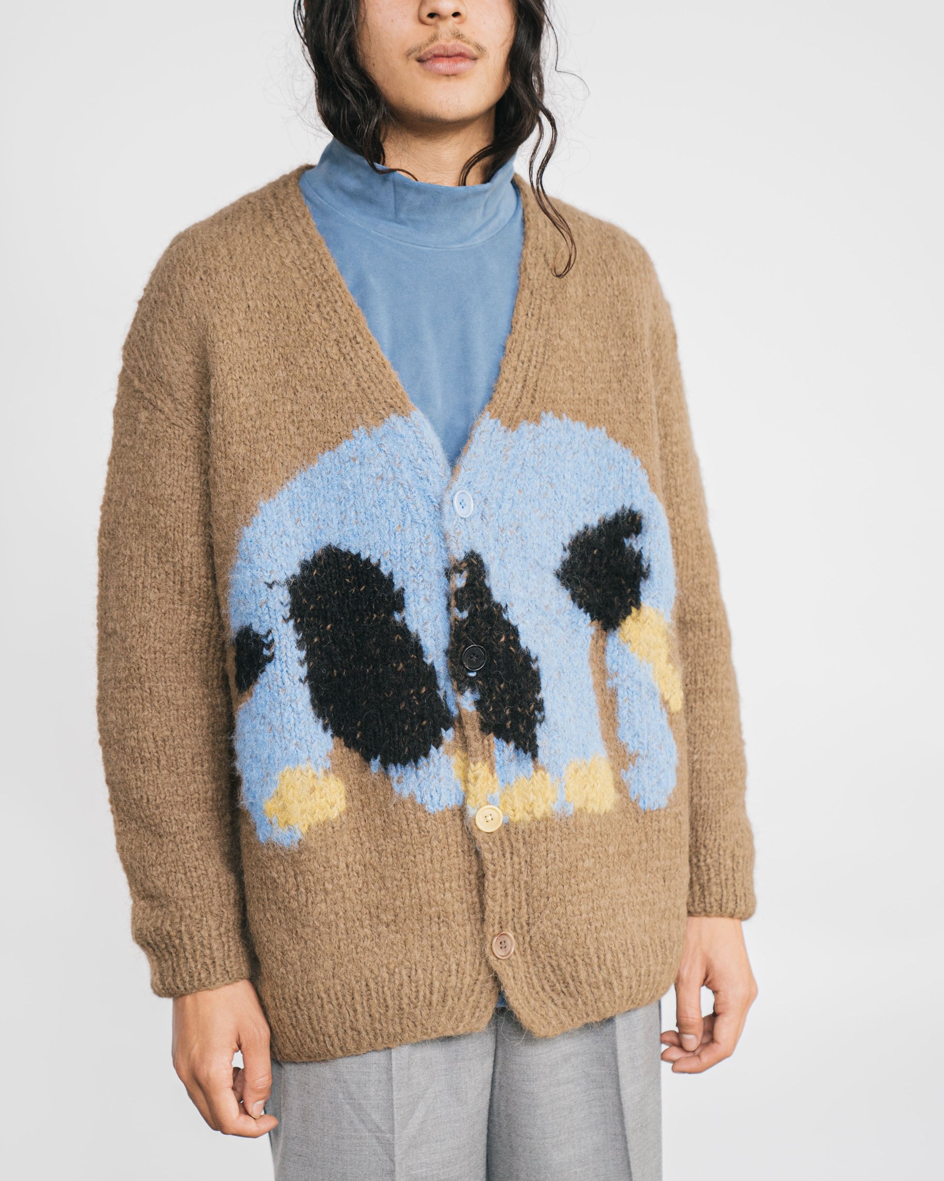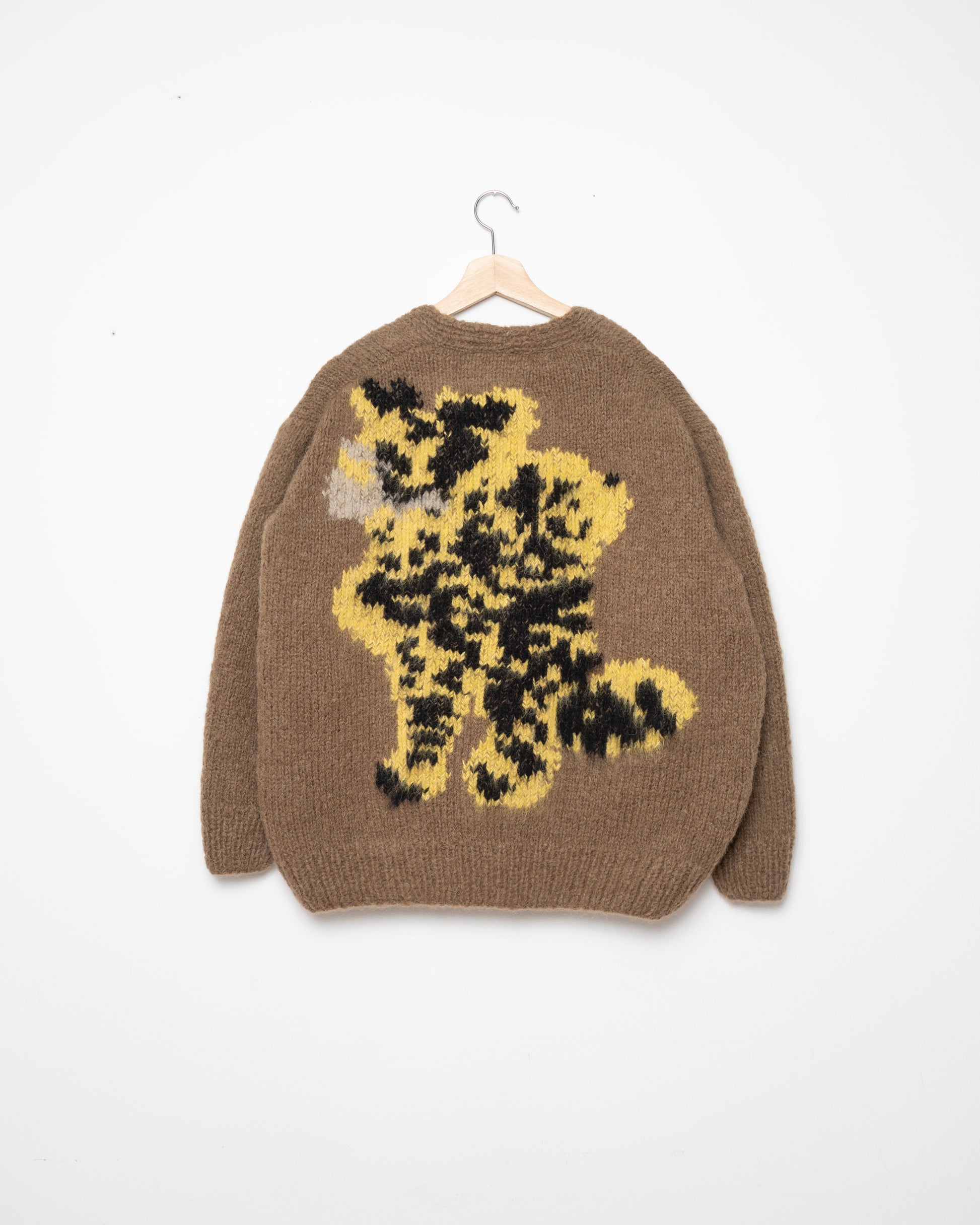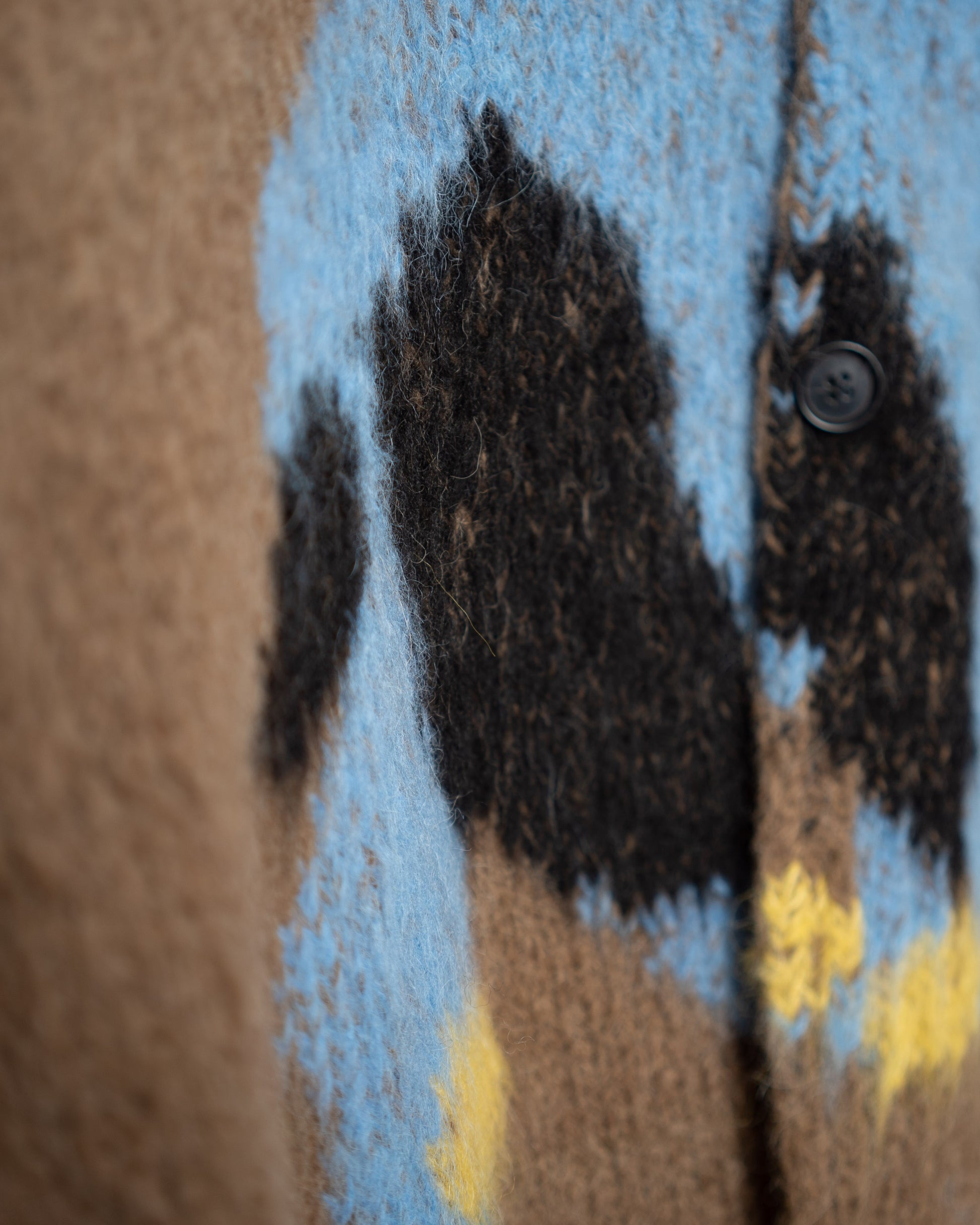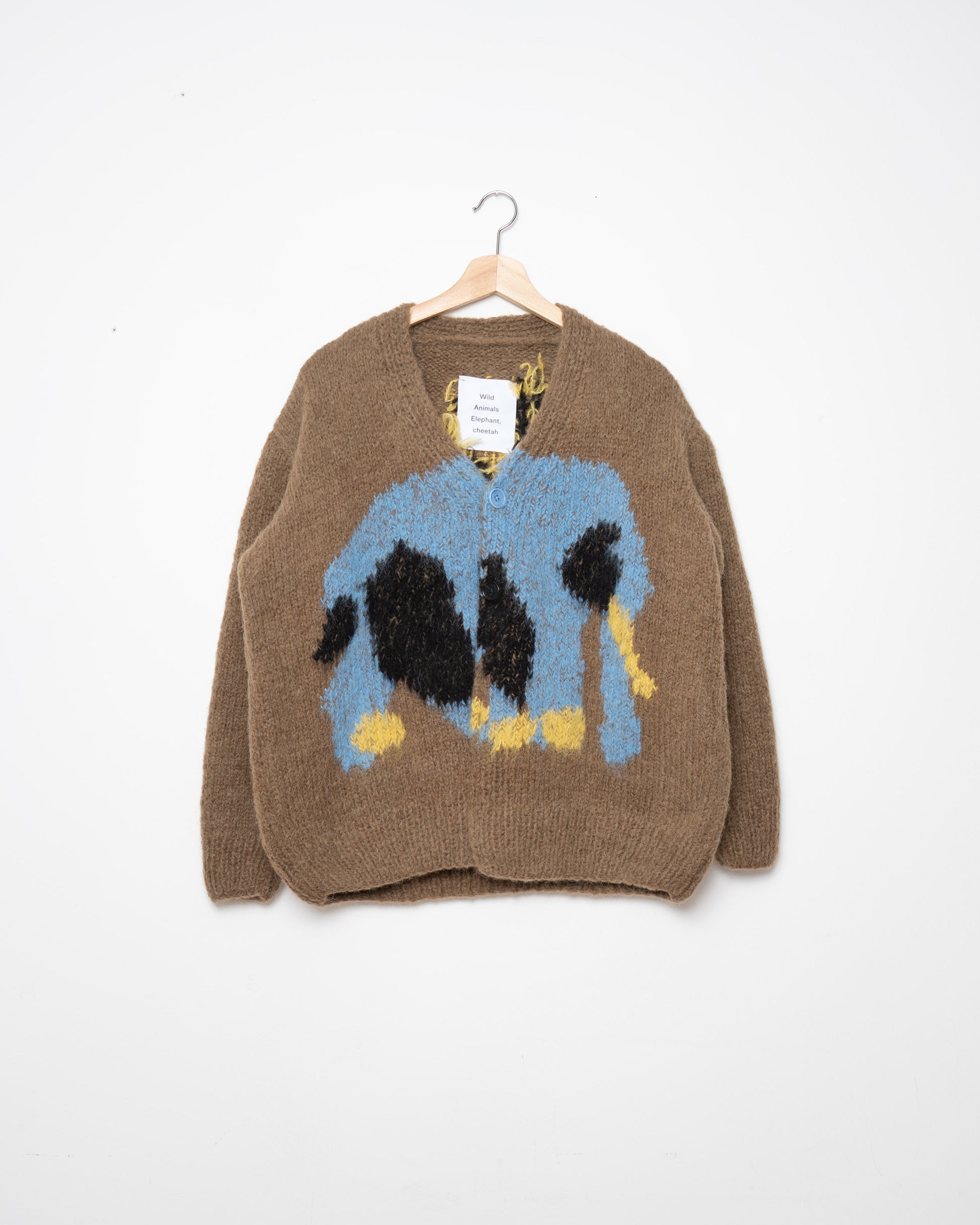 Unisex brown cardigan based on the paintings of Rop van Mierlo. Please note, this is a handmade item and may differ slightly to the photo.