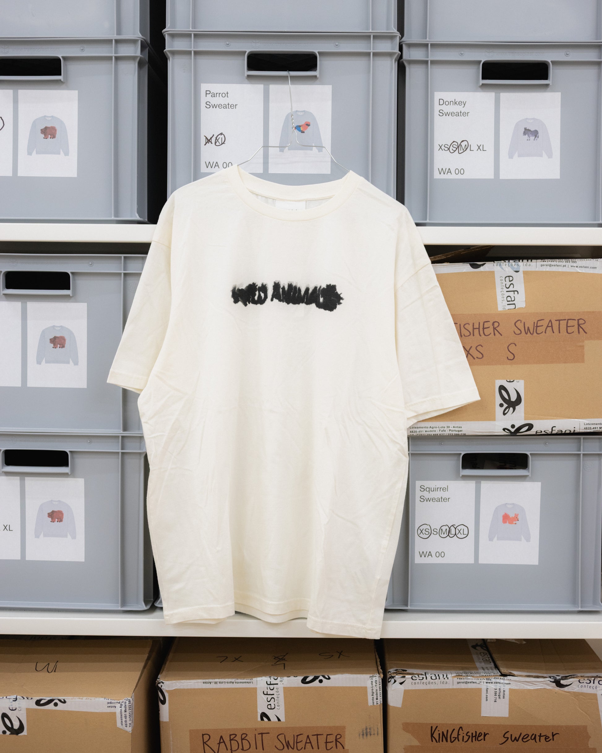An off-white unisex t-shirt featuring a silkscreen print of the Wild Animals logo on the front. Organic cotton. Oversized fit.