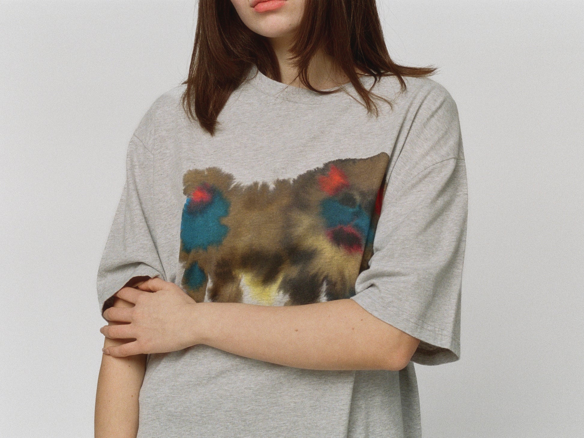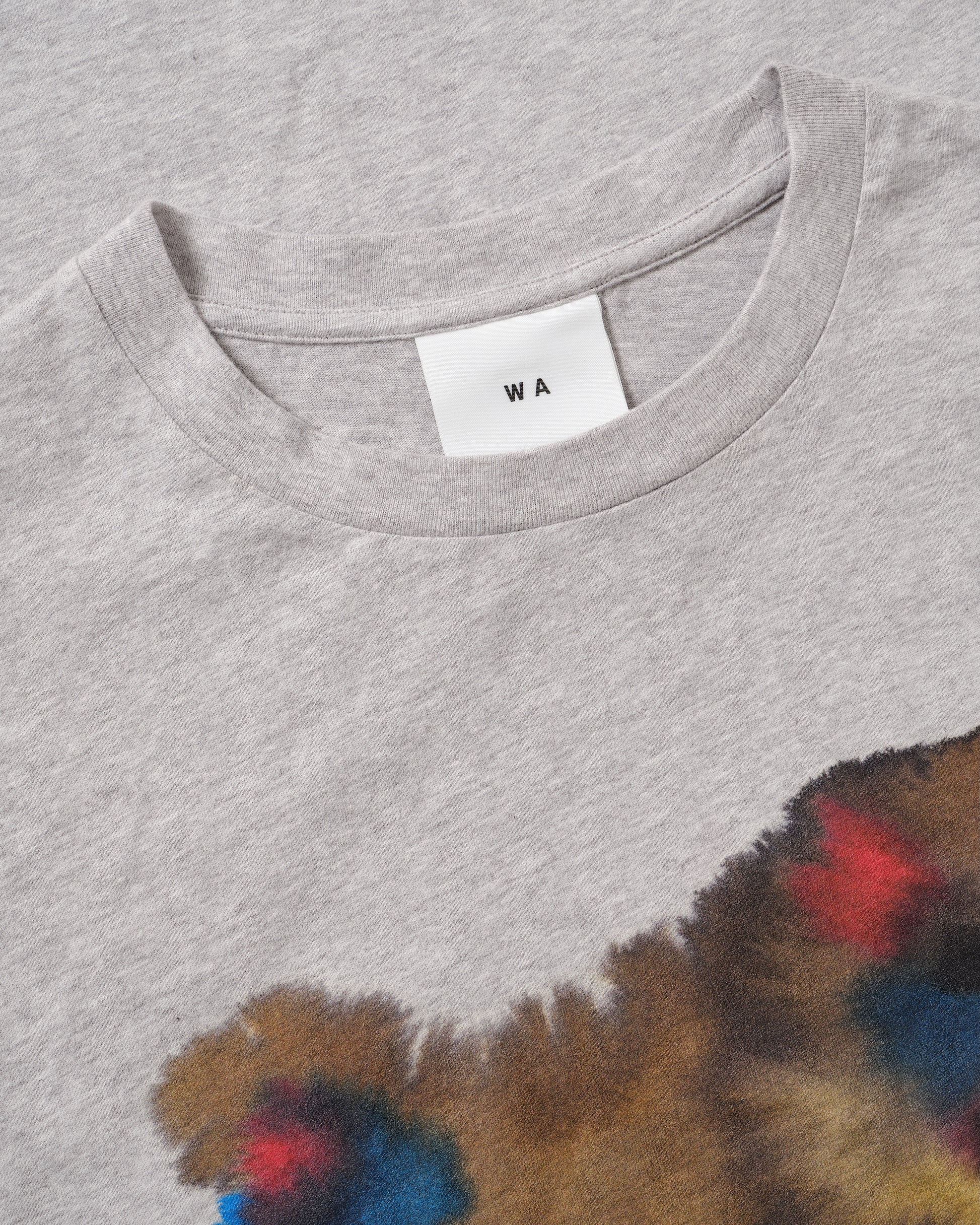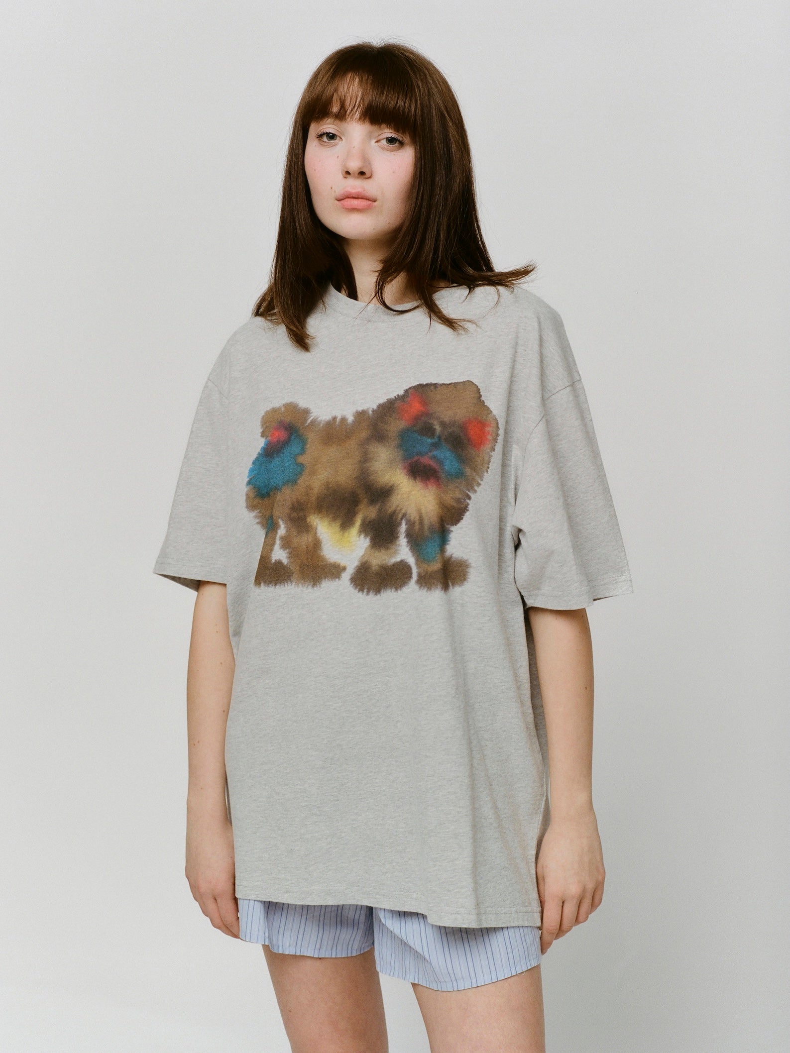 A heather grey unisex t-shirt featuring a Mandrill on the front. The fabric used to make this t-shirt is certified by GOTS.
