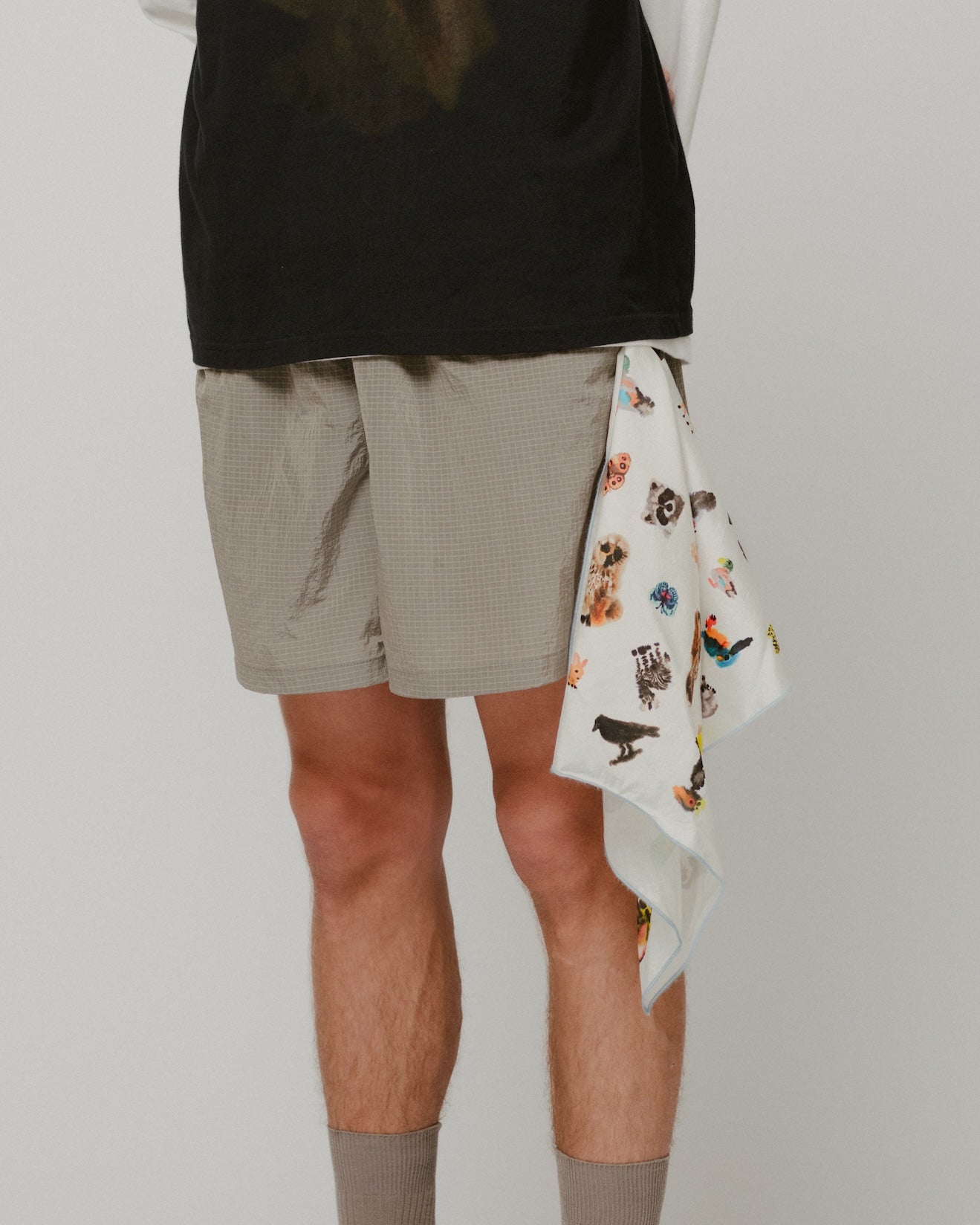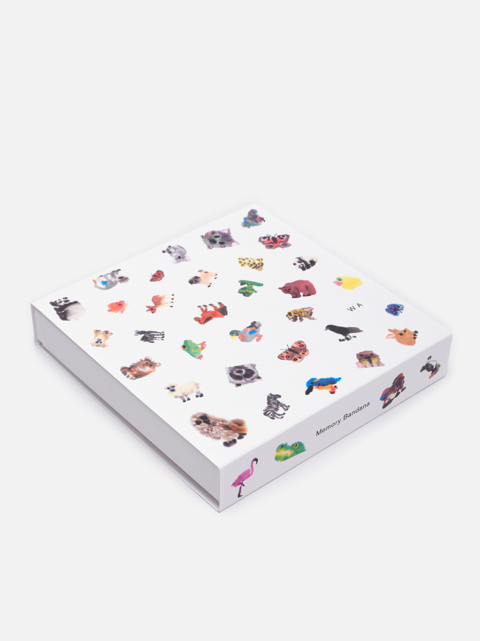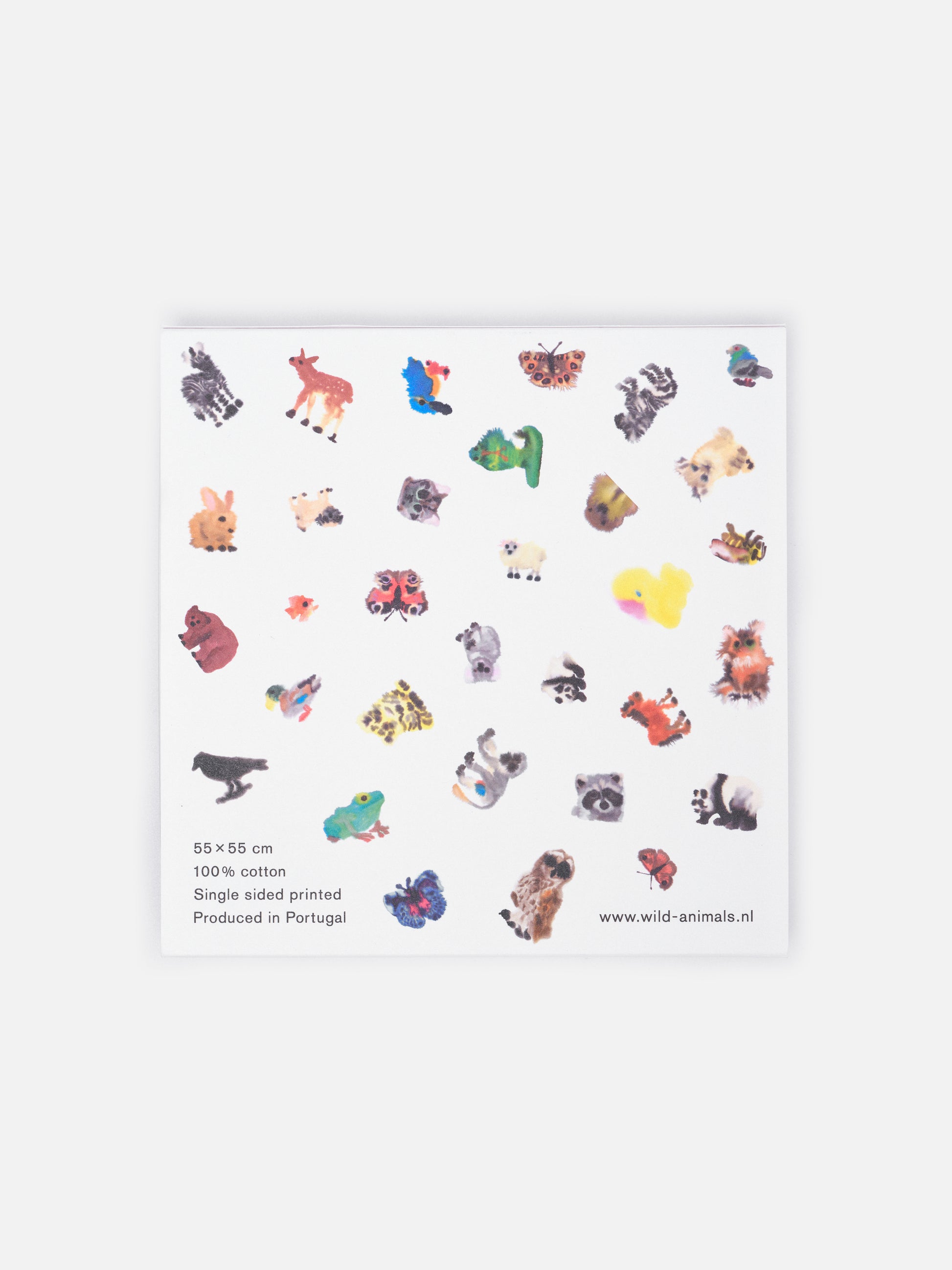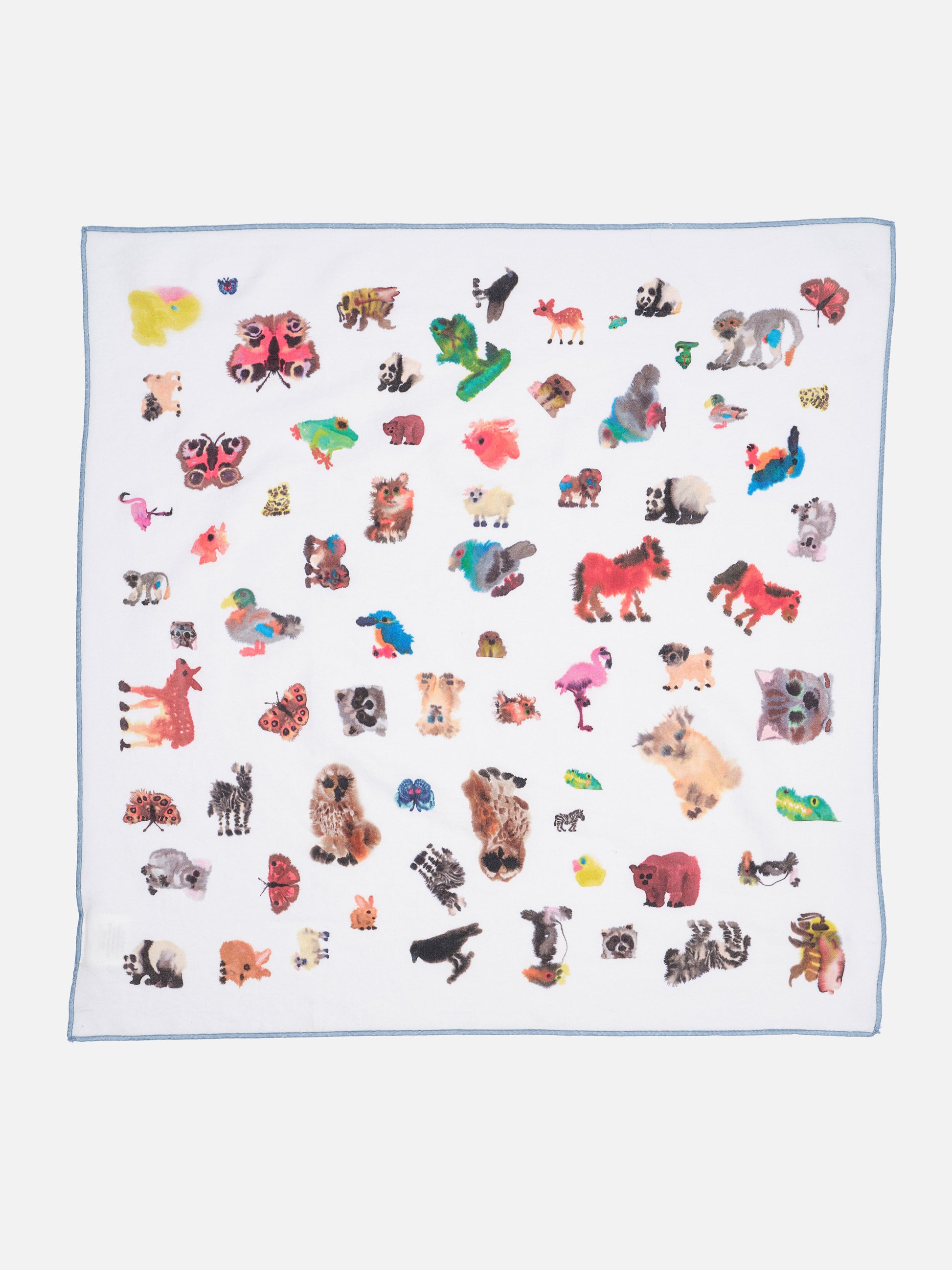 A unisex scarf bandana featuring a digital print of 72 animals on one side.