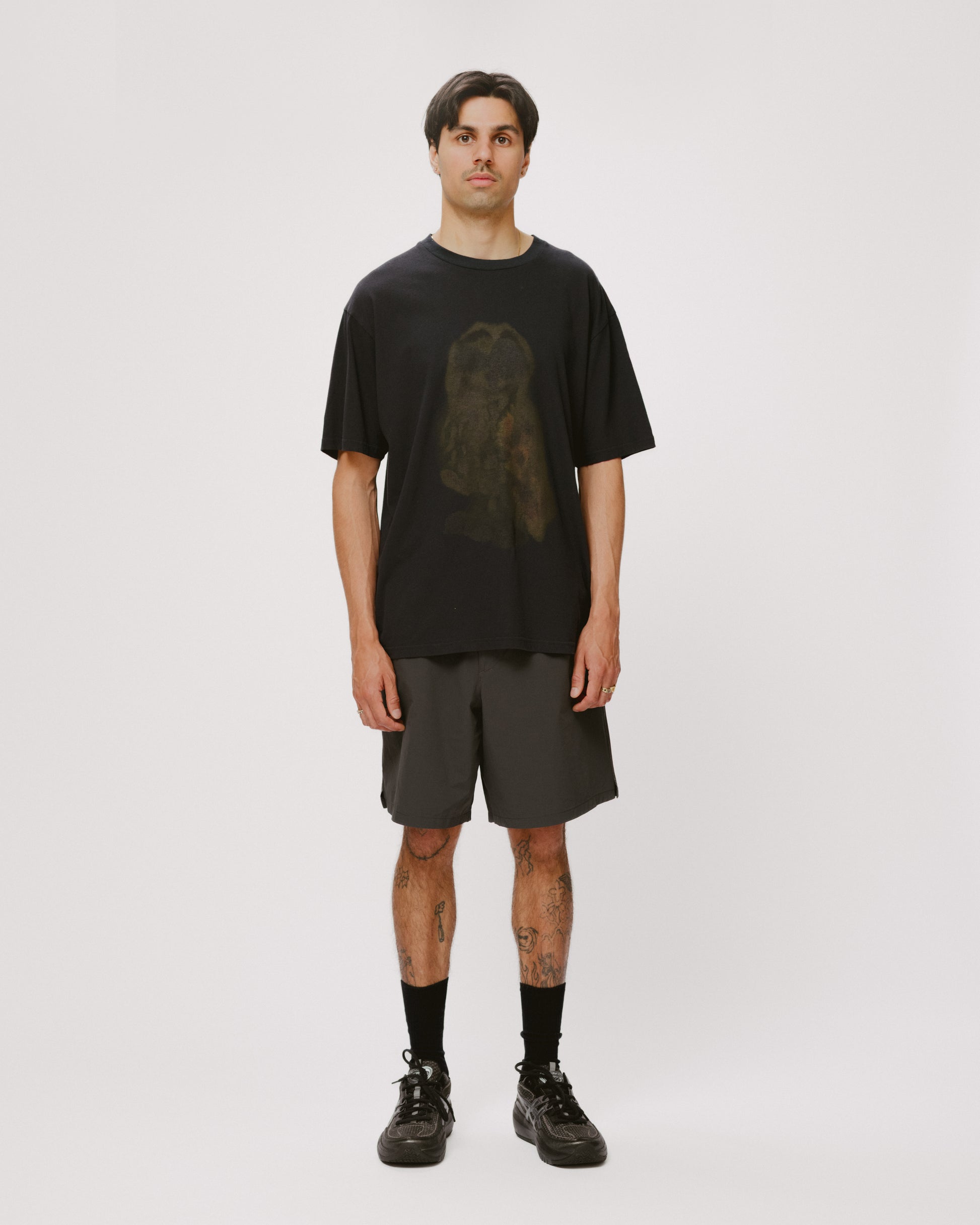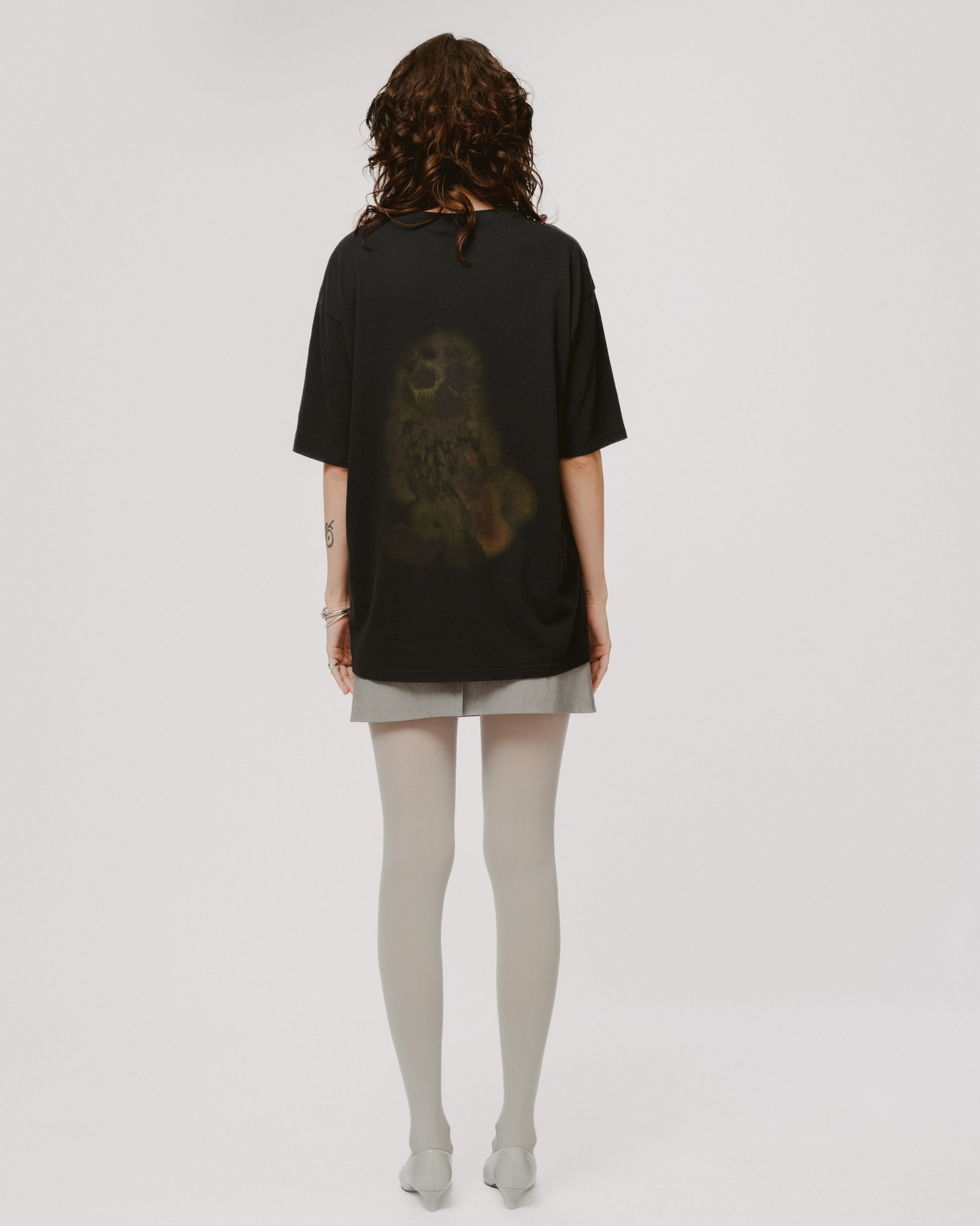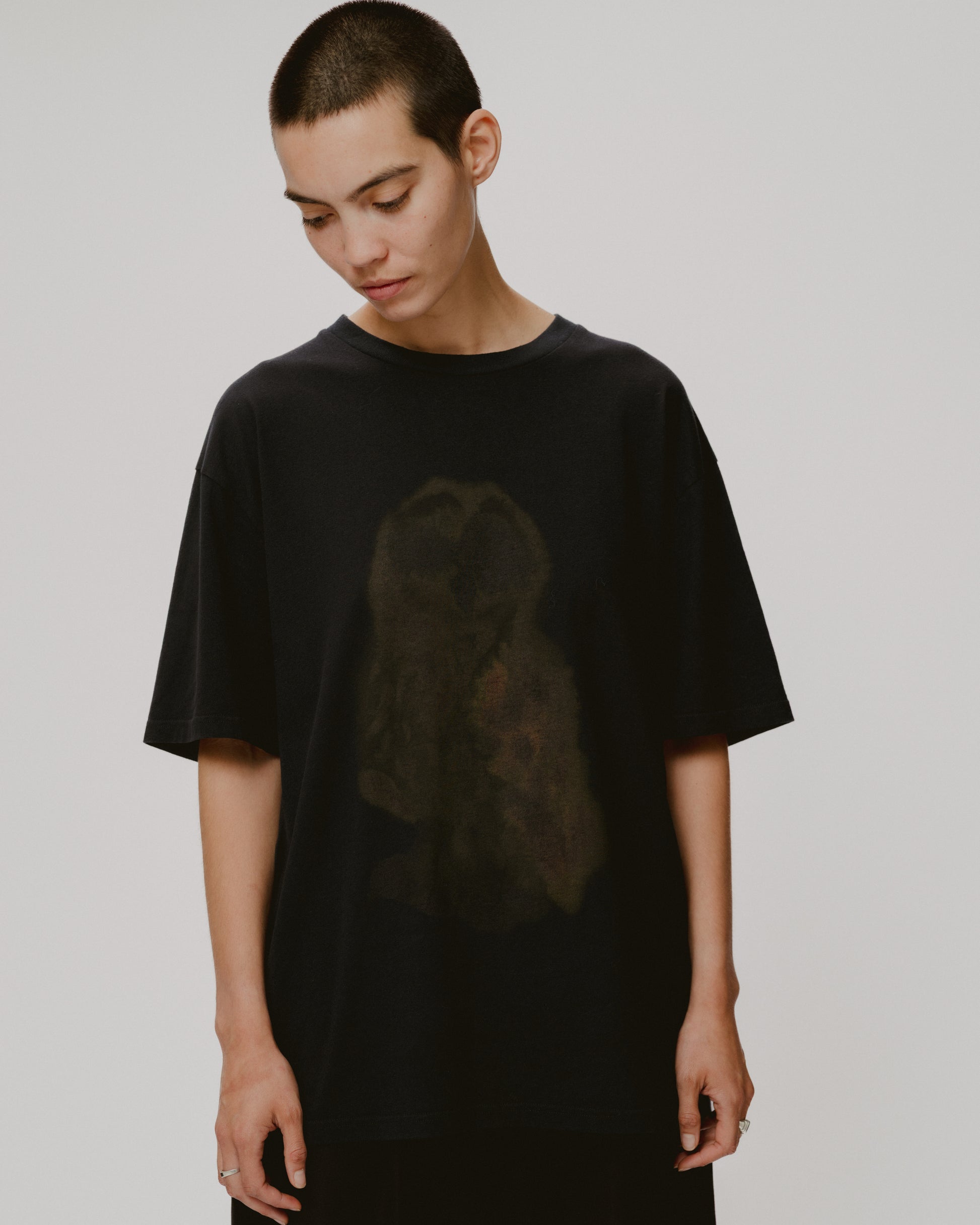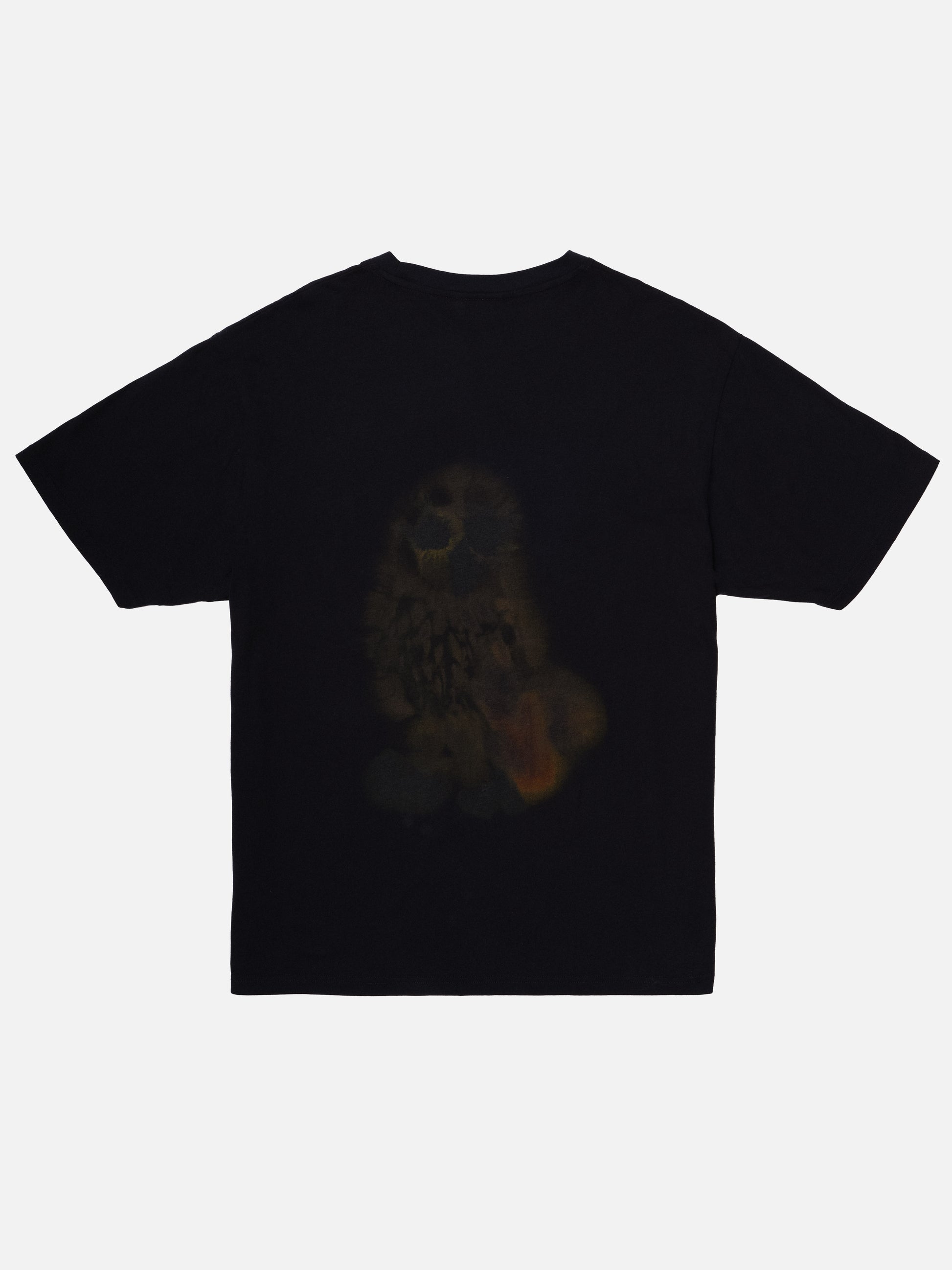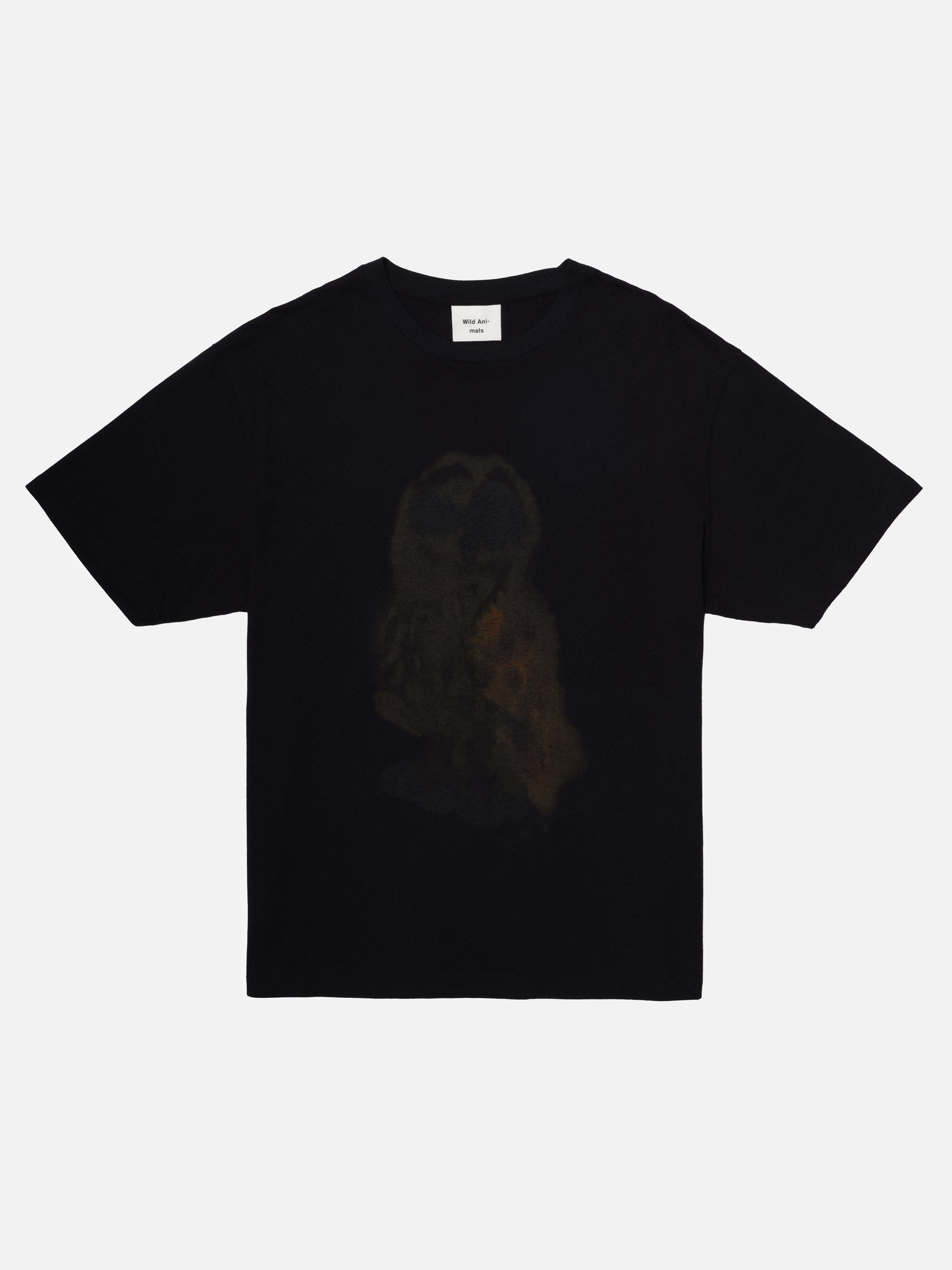 A black unisex t-shirt featuring an Owl on the front and an Owl on the back. The fabric used to make this t-shirt is certified by GOTS.