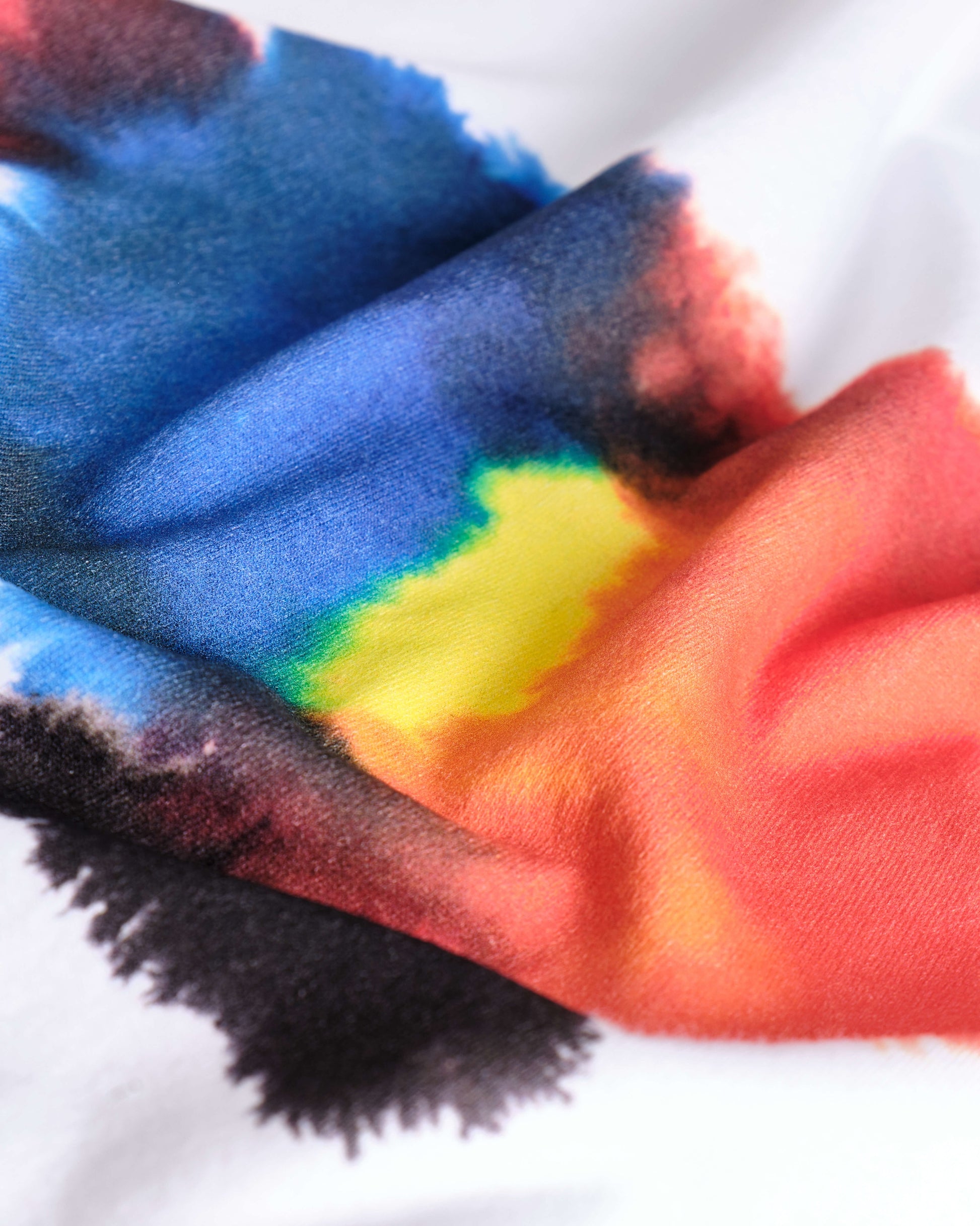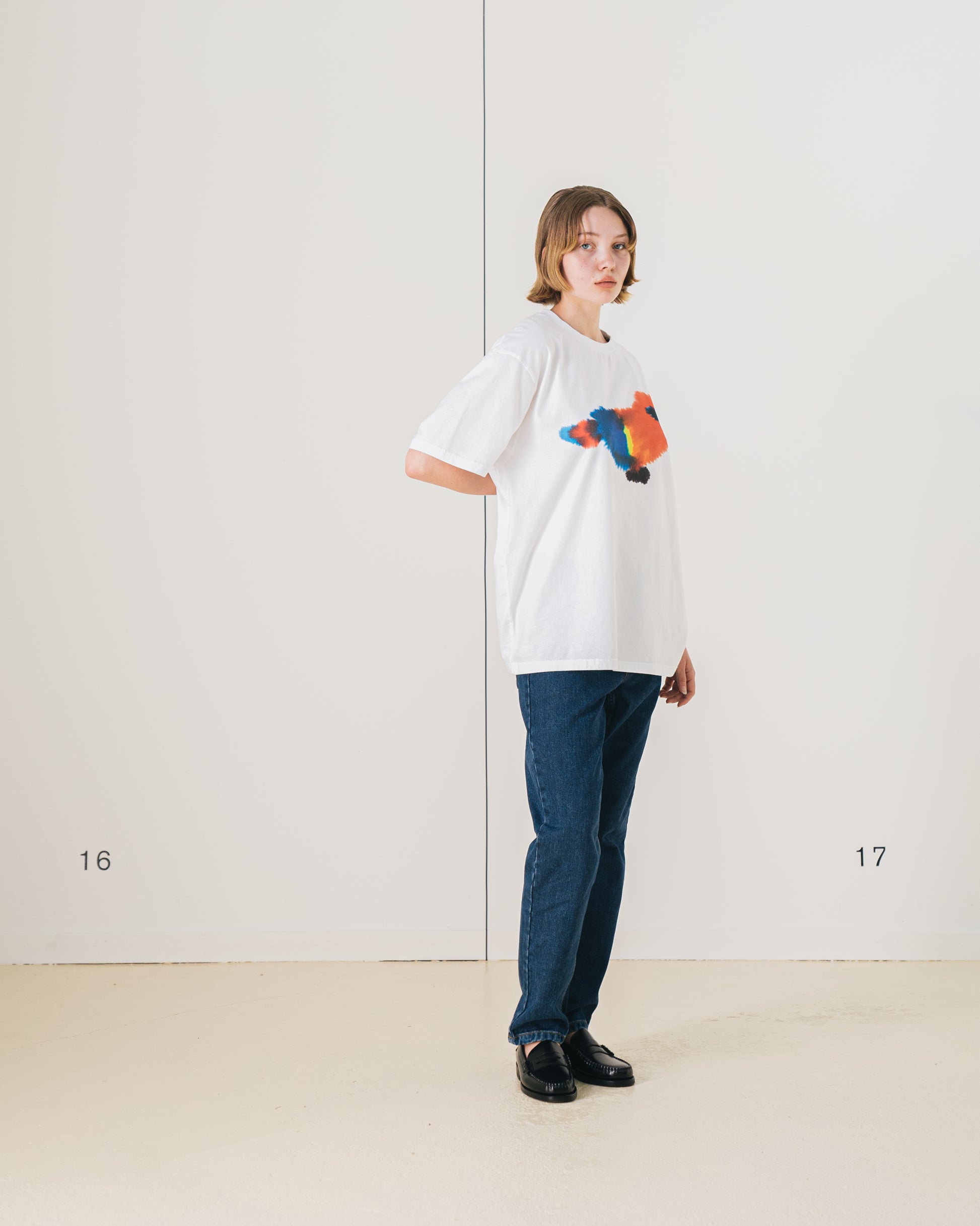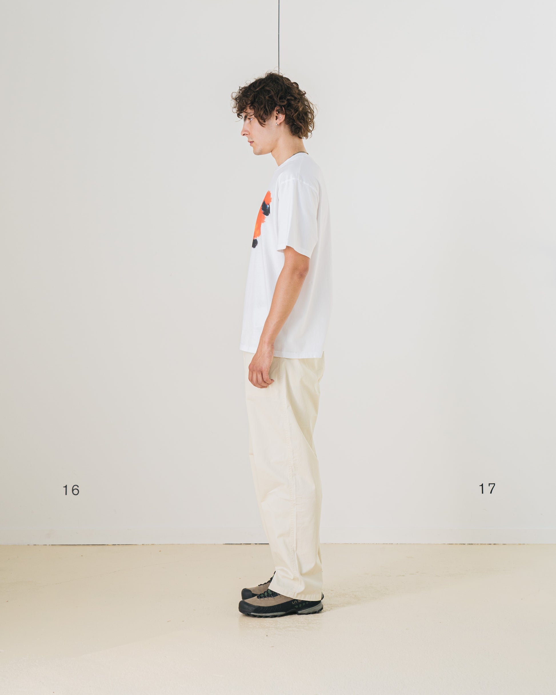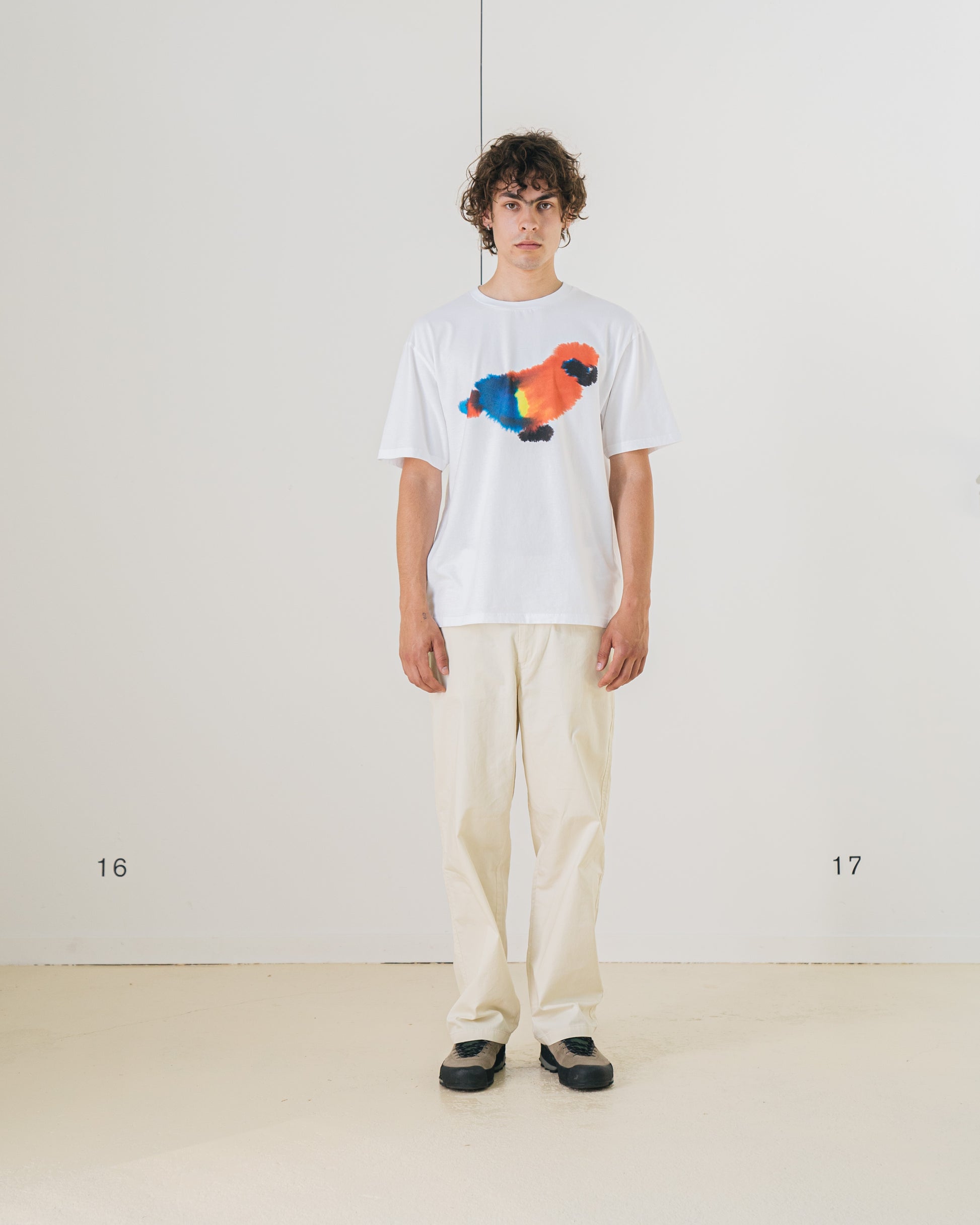 A white unisex t-shirt featuring a print of a Parrot on the front. The fabric used to make this t-shirt is certified by GOTS. Tome is 1.89 cm and wears a size medium. Joy is 1.76 cm and wears a size medium.