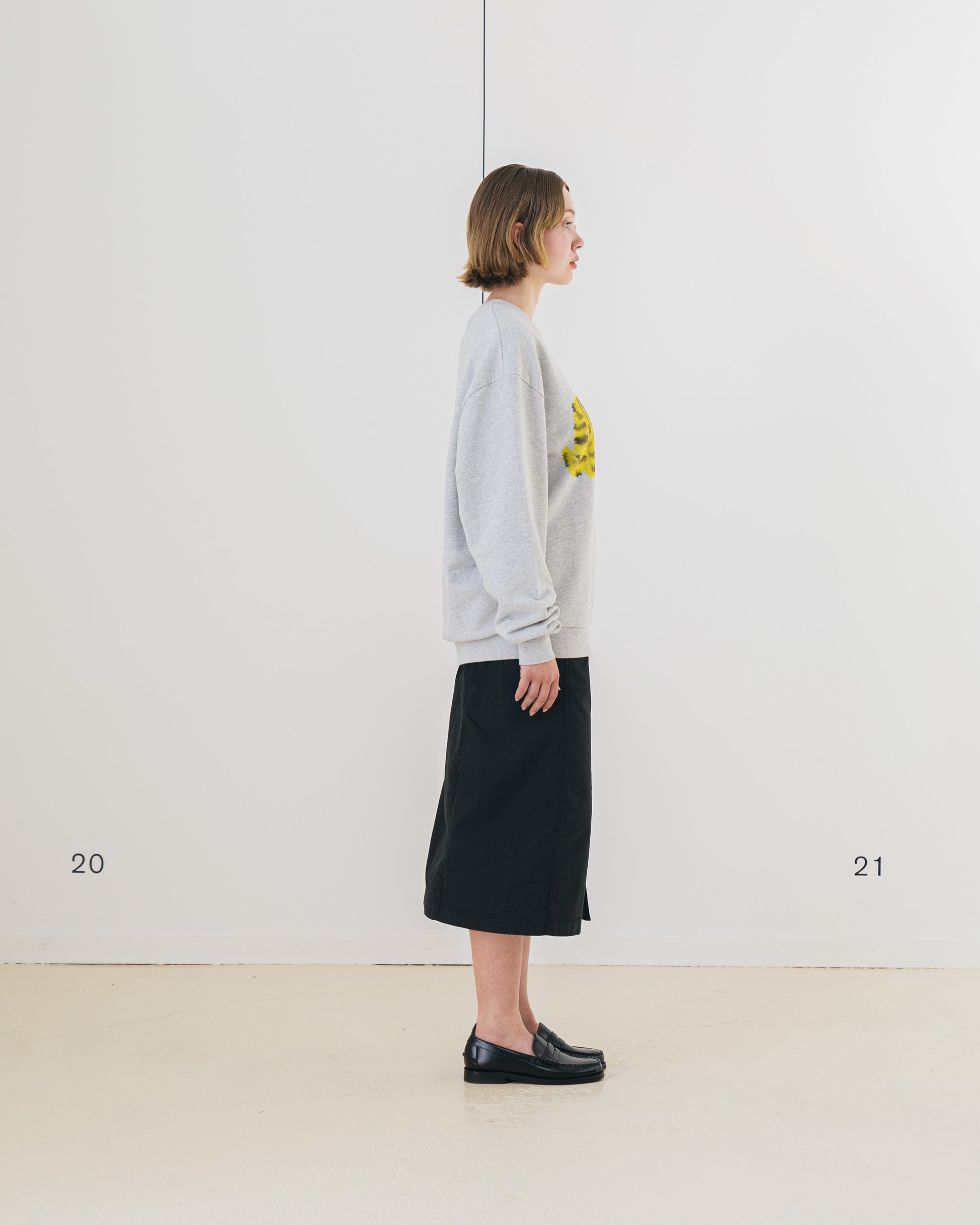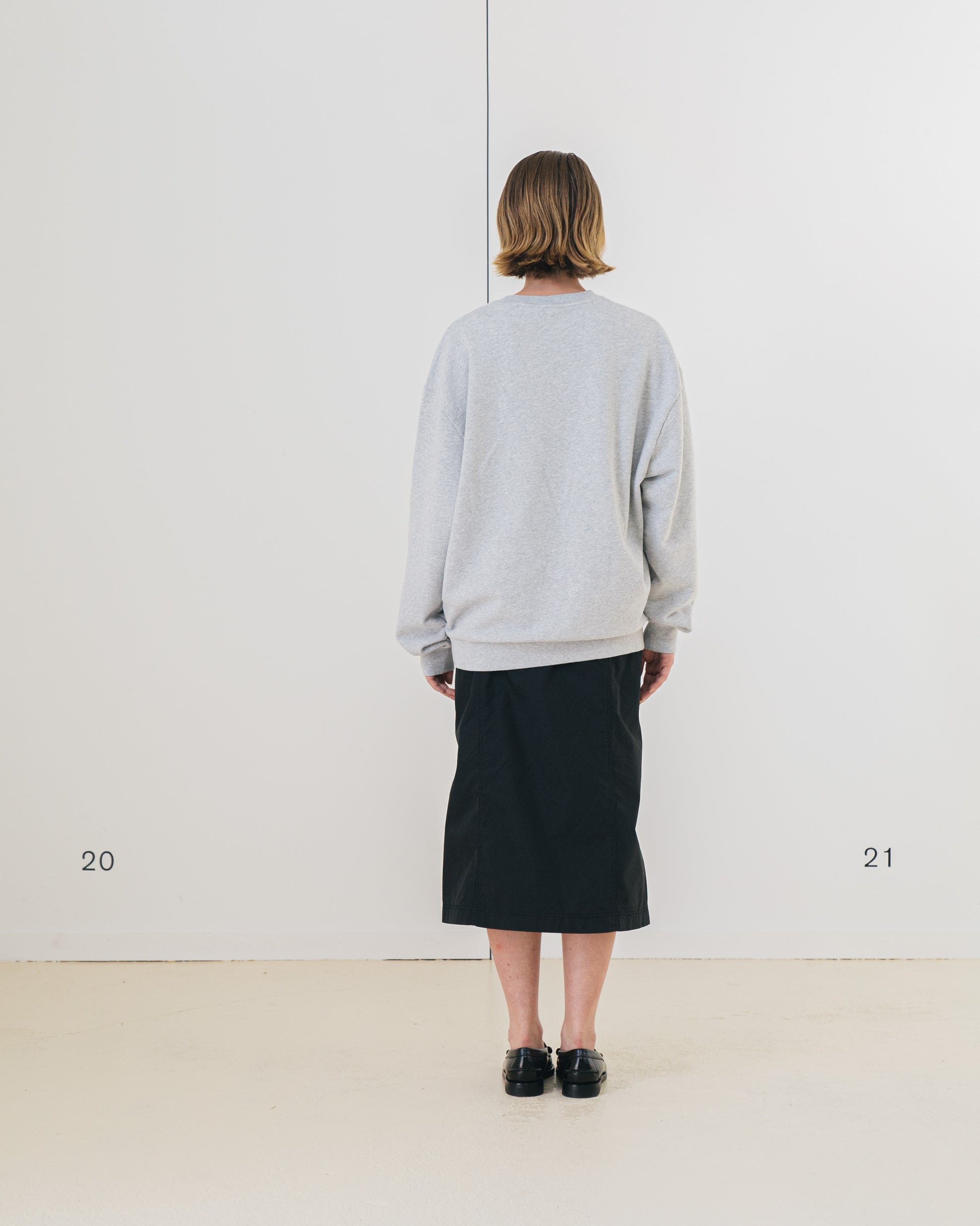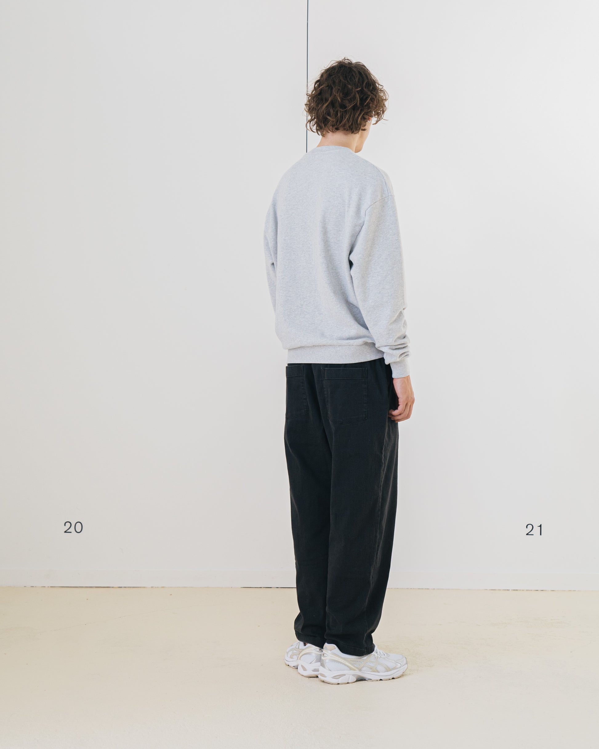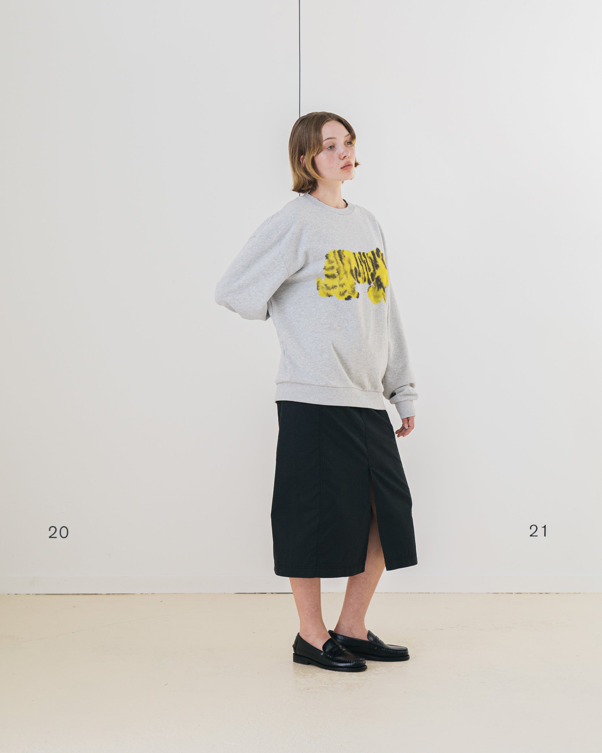 A heather grey unisex sweatshirt featuring a print of a Tiger on the front. The fabric used to make this sweatshirt is certified by GOTS. Tome is 1.89 cm and wears a size medium. Joy is 1.76 cm and wears a size medium.