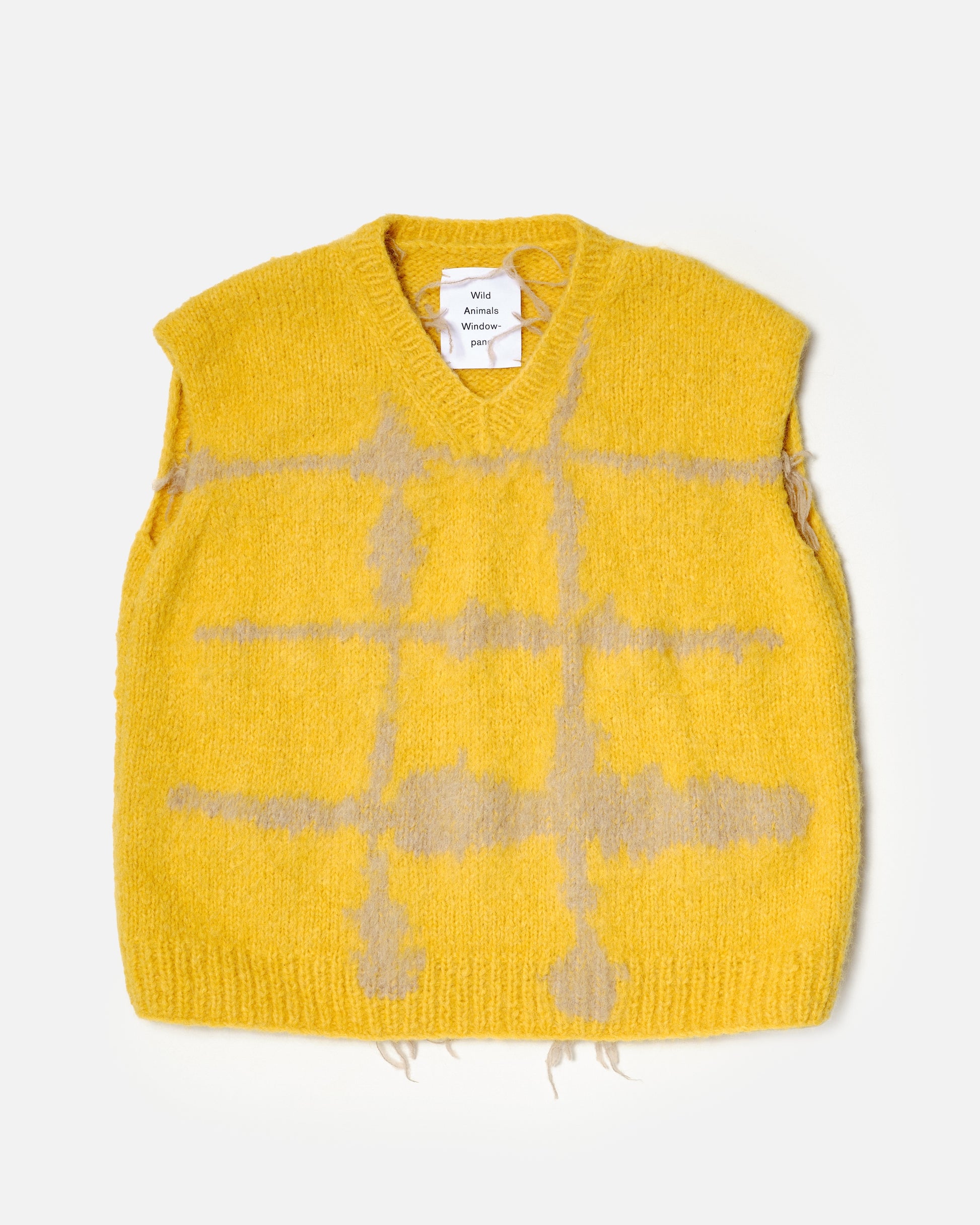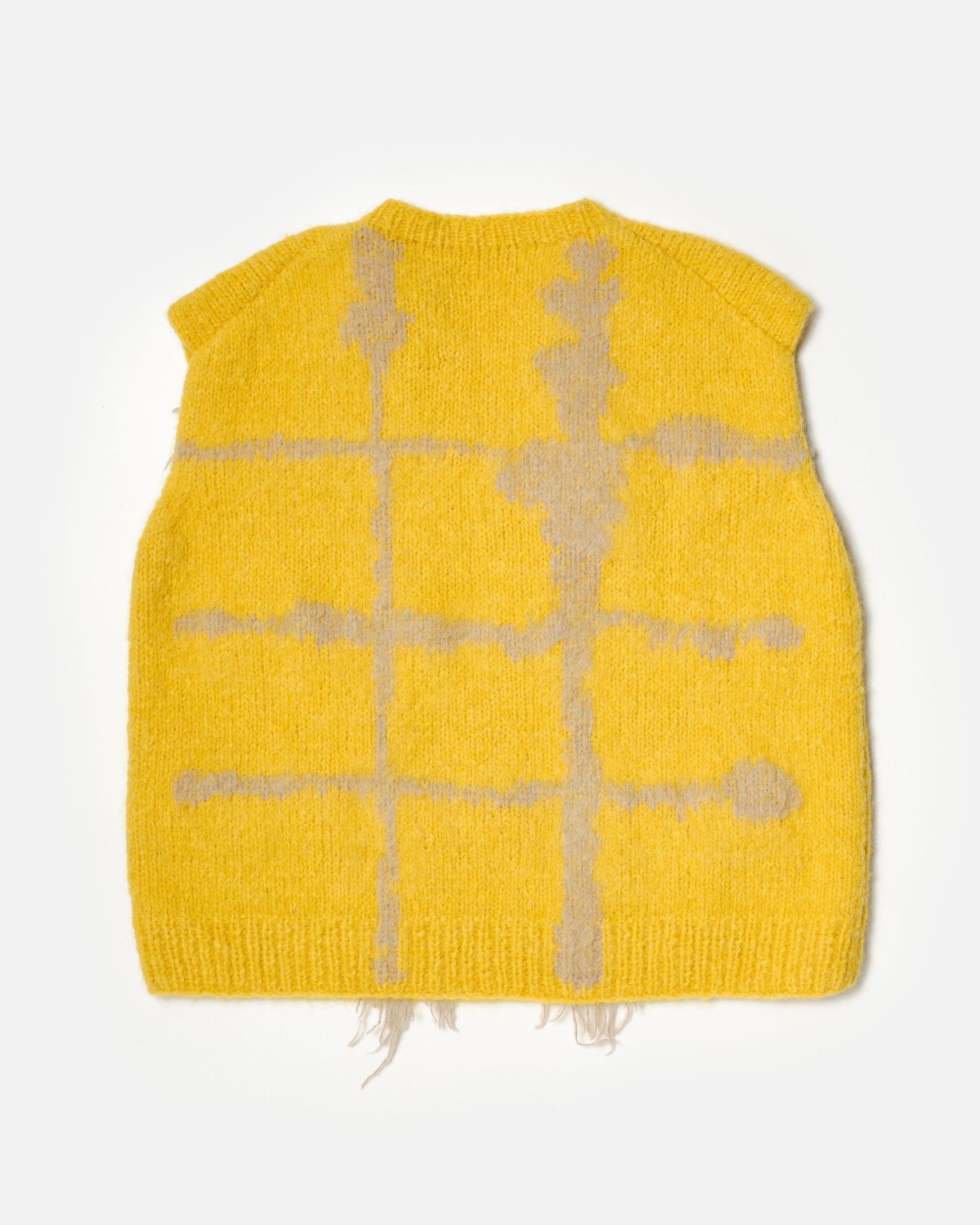 Unisex yellow vest based on the pattern paintings of Rop van Mierlo. Each garment from this collection is hand knitted in Bosnia, using traditional techniques by a team of 30 craftswomen.